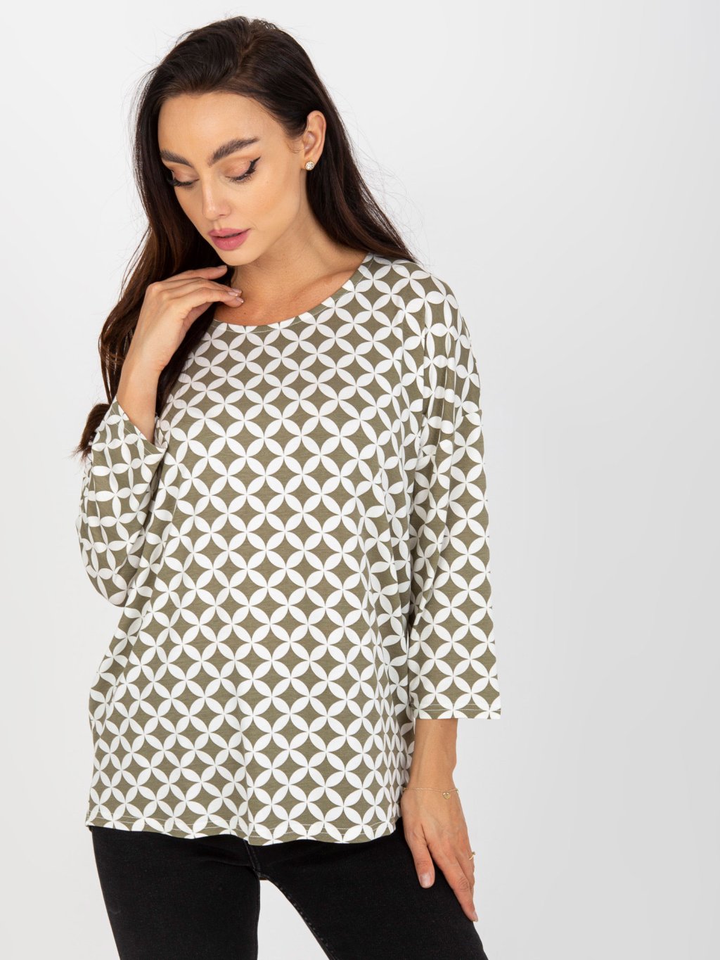 Fehér-bézs mintás viszkóz blúz