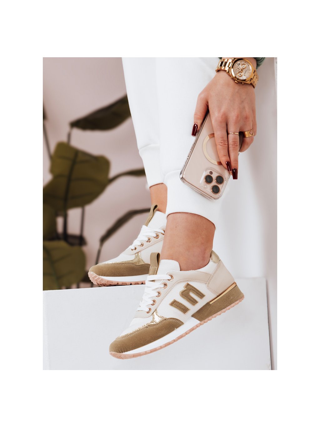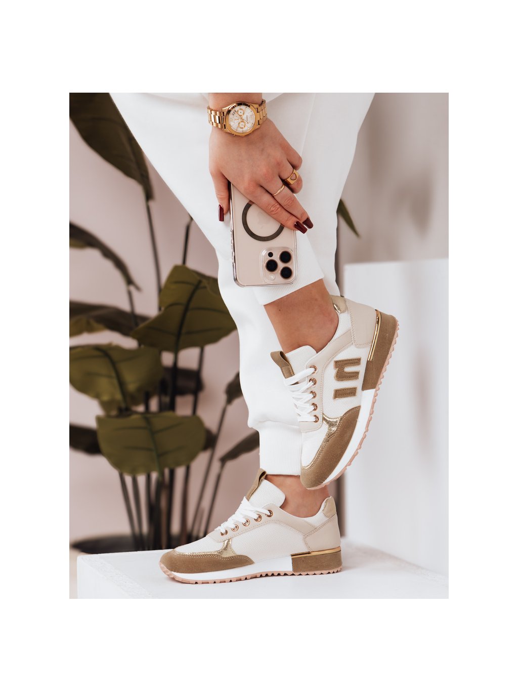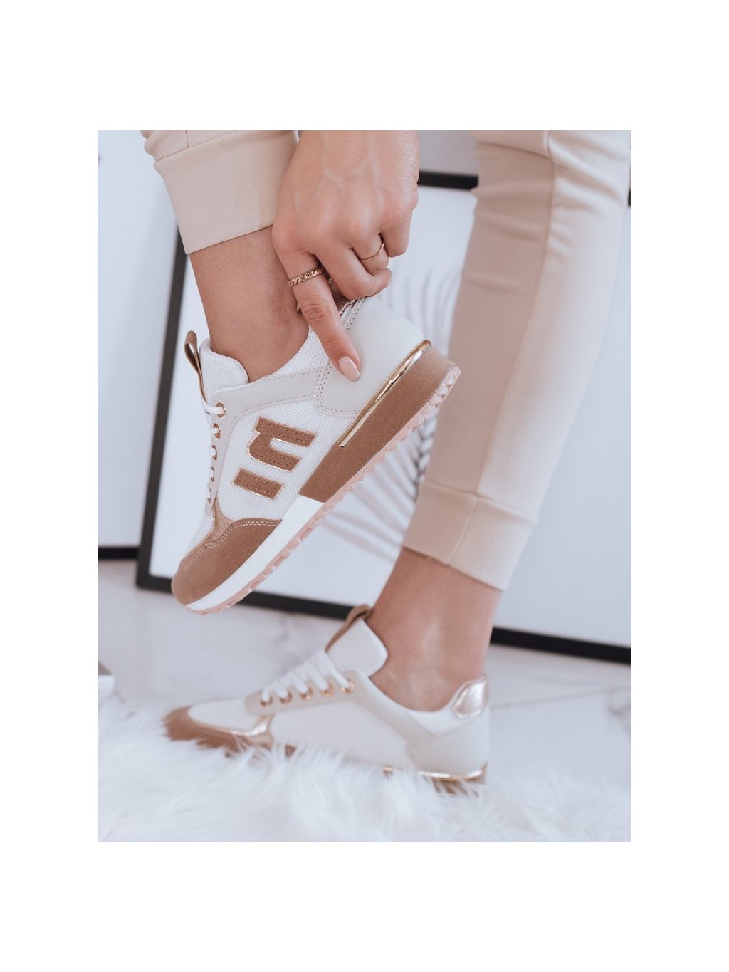 Fehér-bézs női stílusos tornacipő