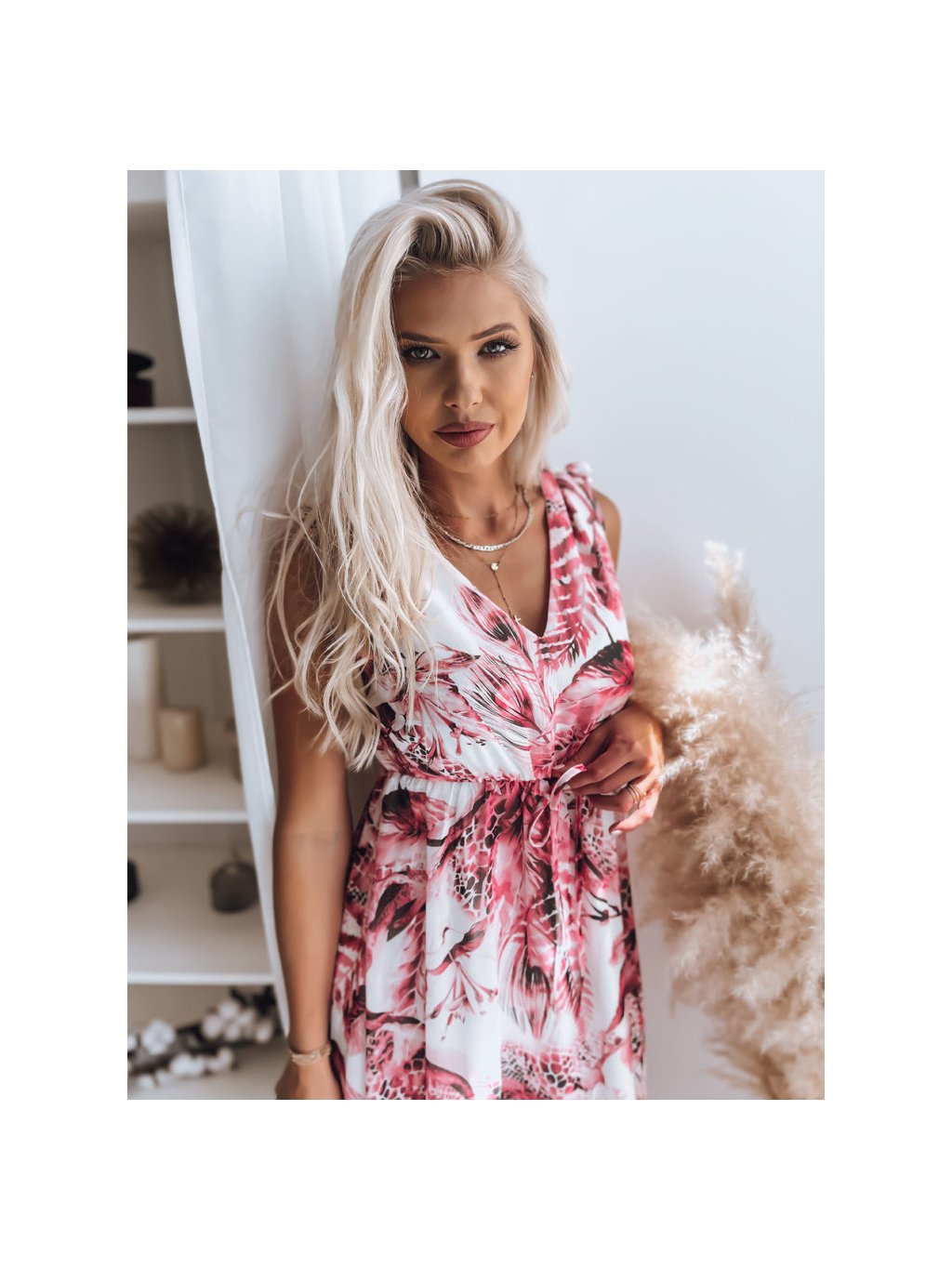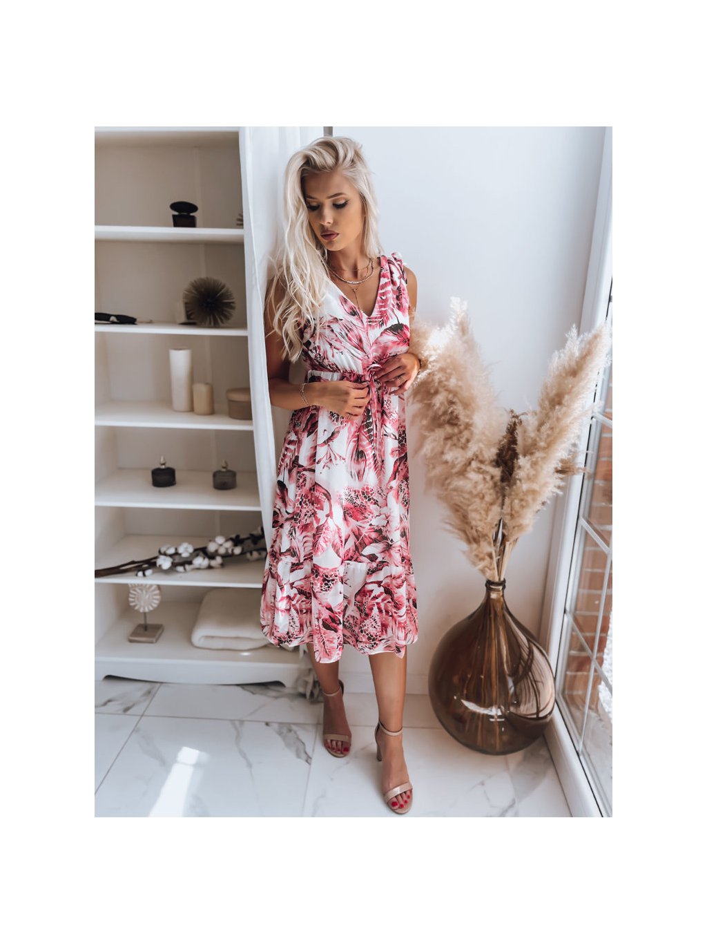 Fehér-bordó midi ruha virágmintával MADAM