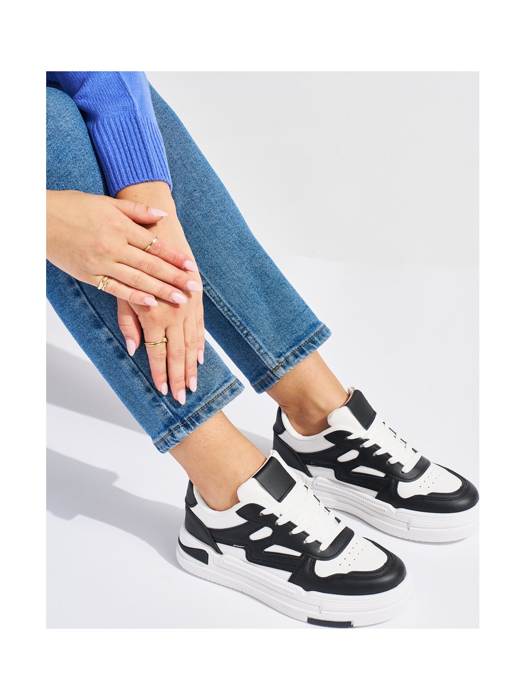 Fehér és fekete platformos tornacipő