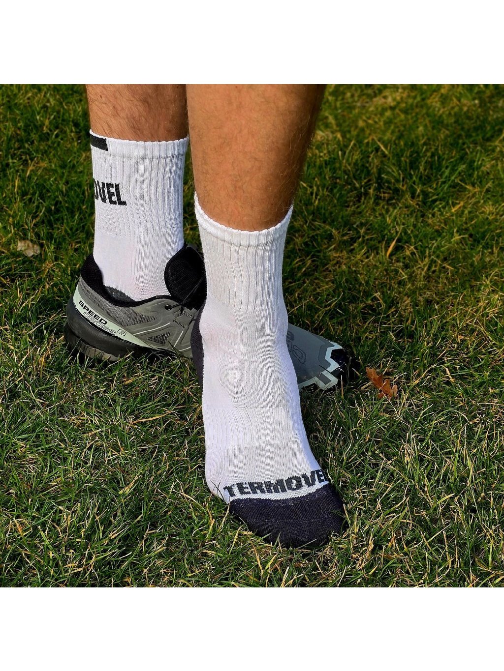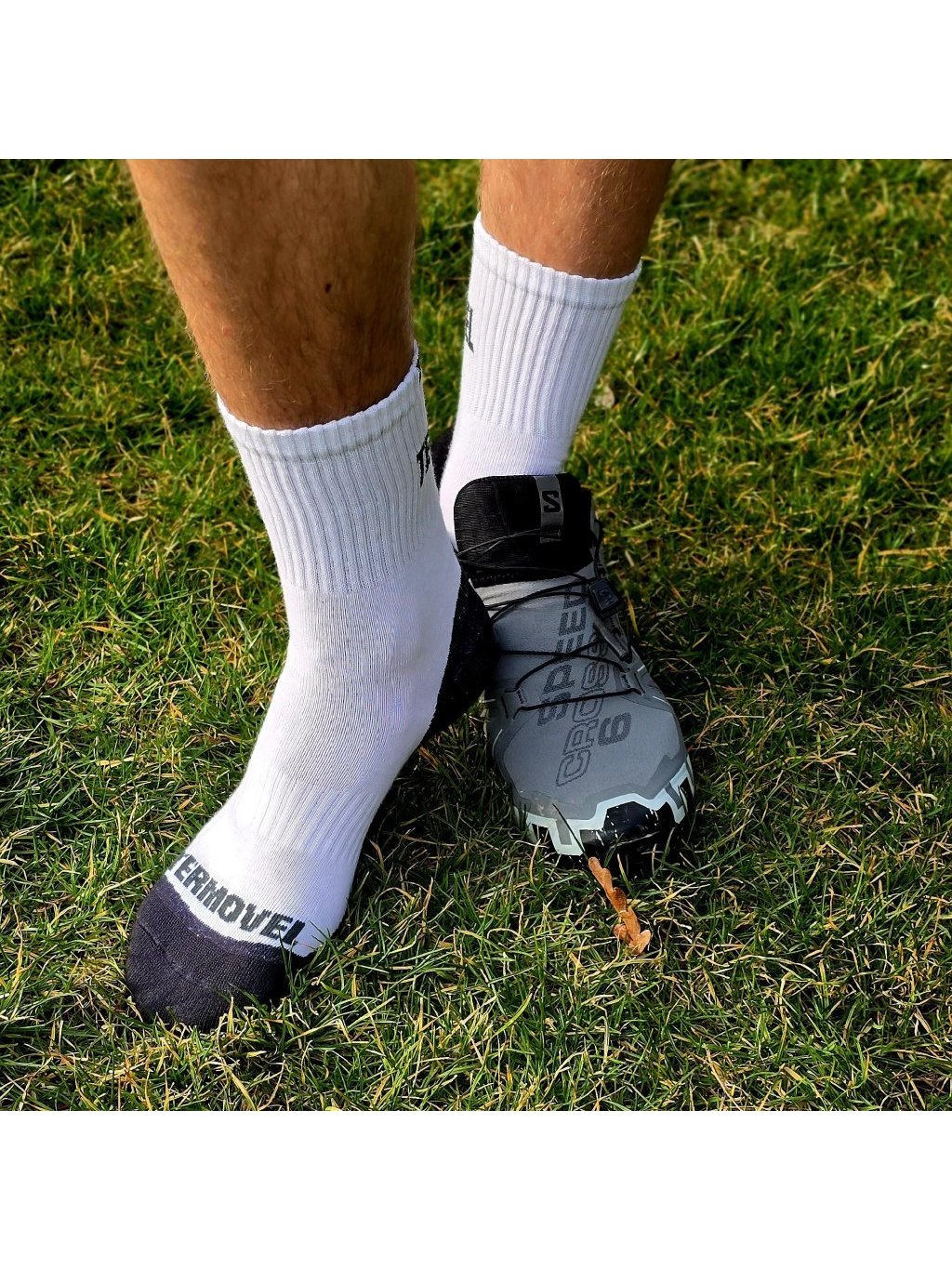 Fehér és fekete zokni frottír sarokkal és orral