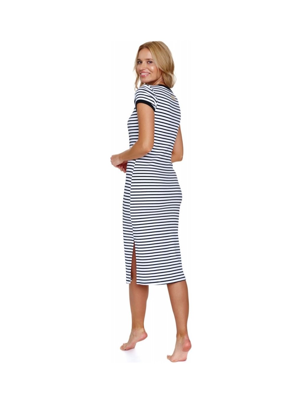 Fehér-fekete női csíkos hálóing, rövid ujjú Doctor Nap