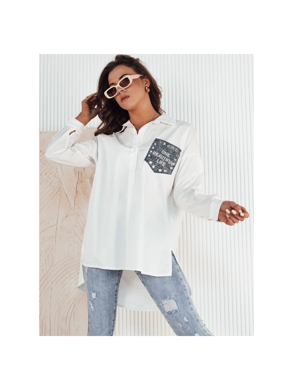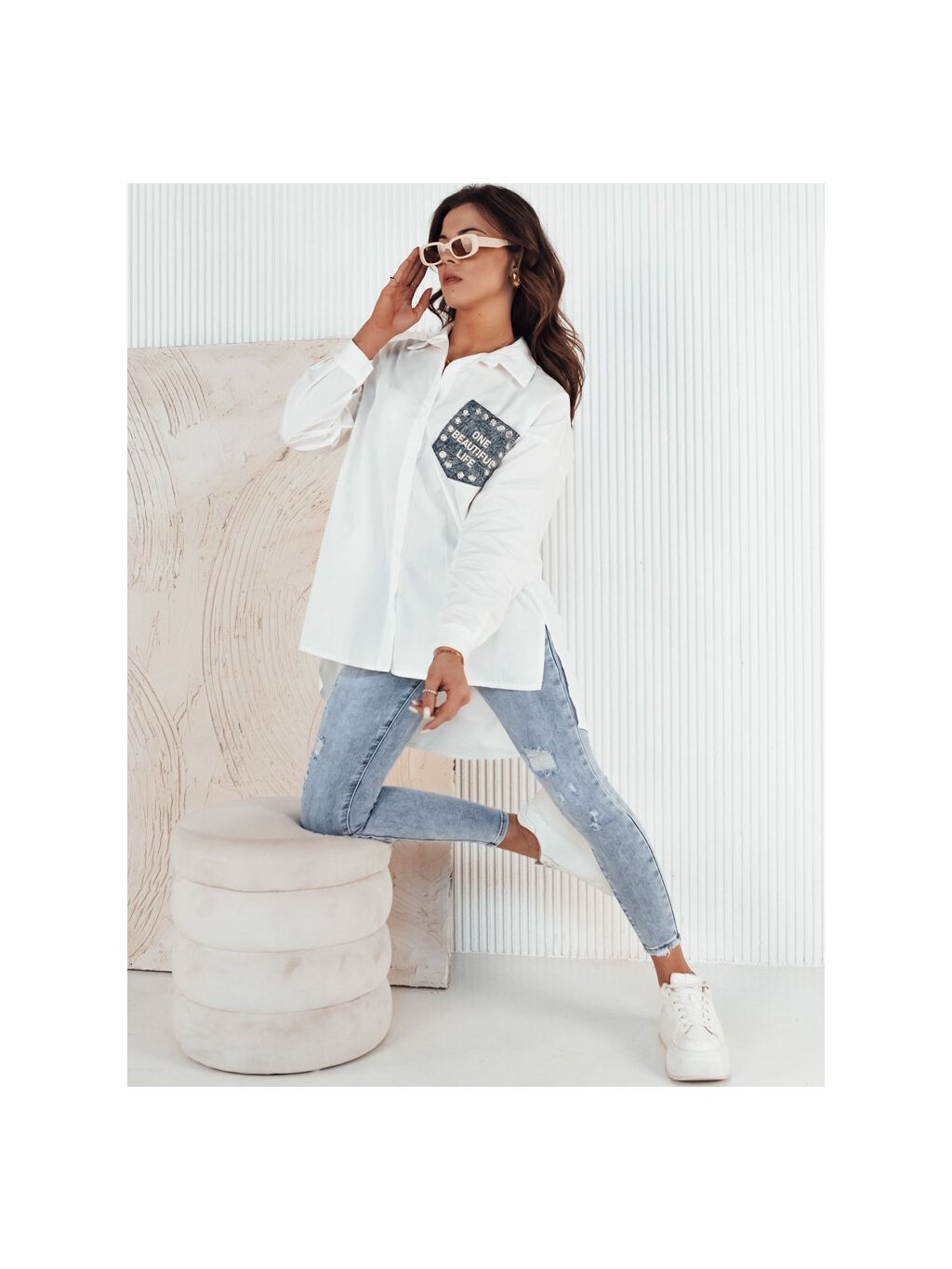 Fehér hosszú ing zsebbel FONZ