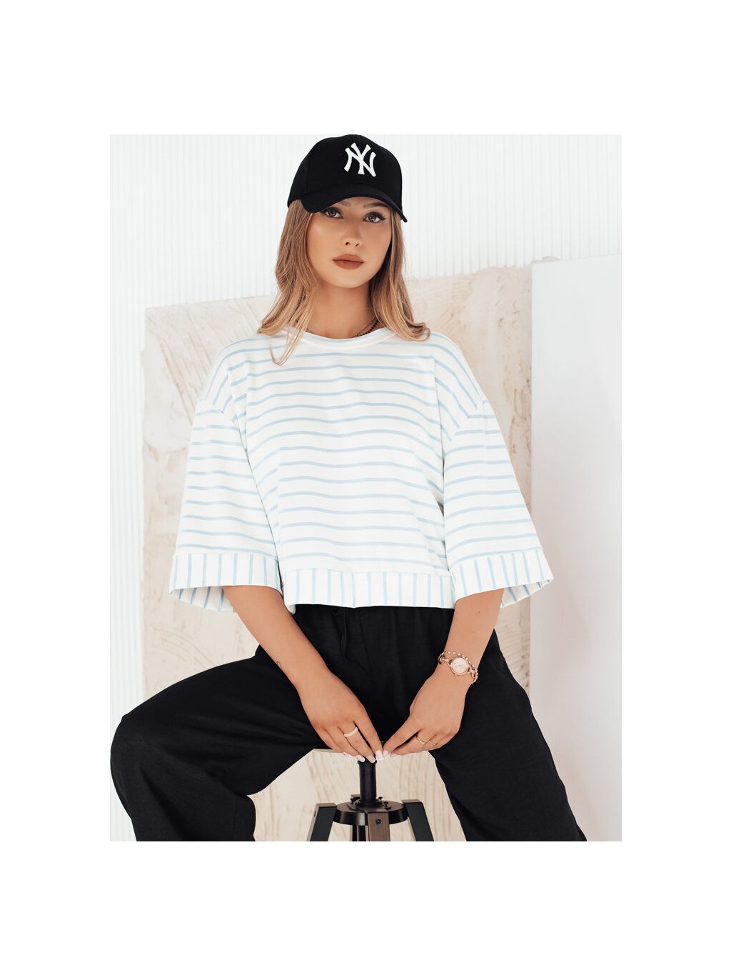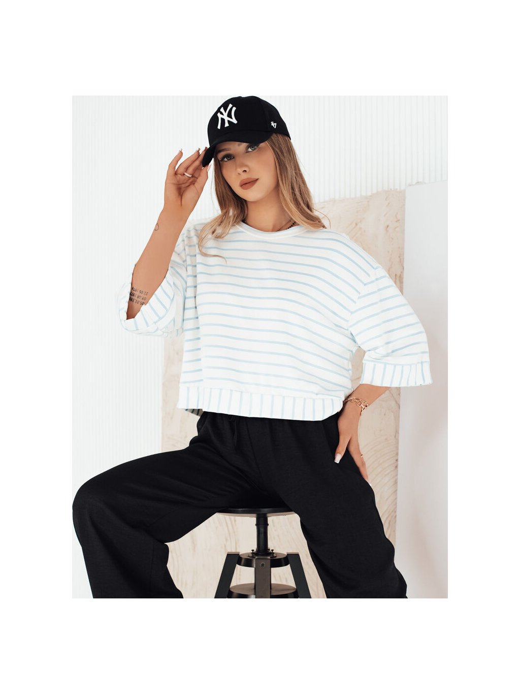 Fehér-kék csíkos lezser póló TAUSE
