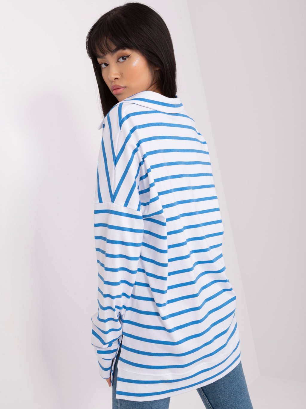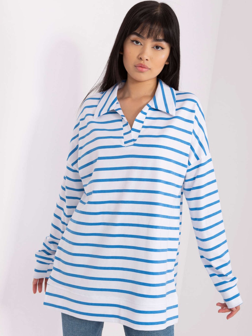 Fehér-kék csíkos póló gallérral