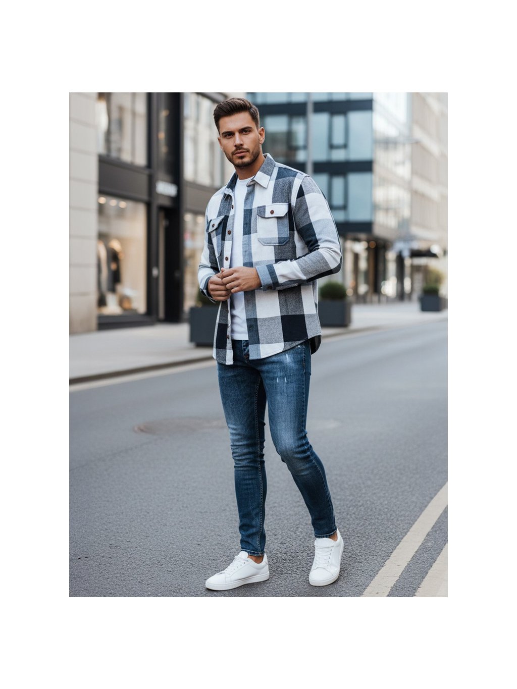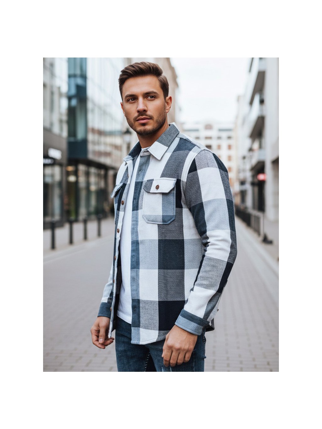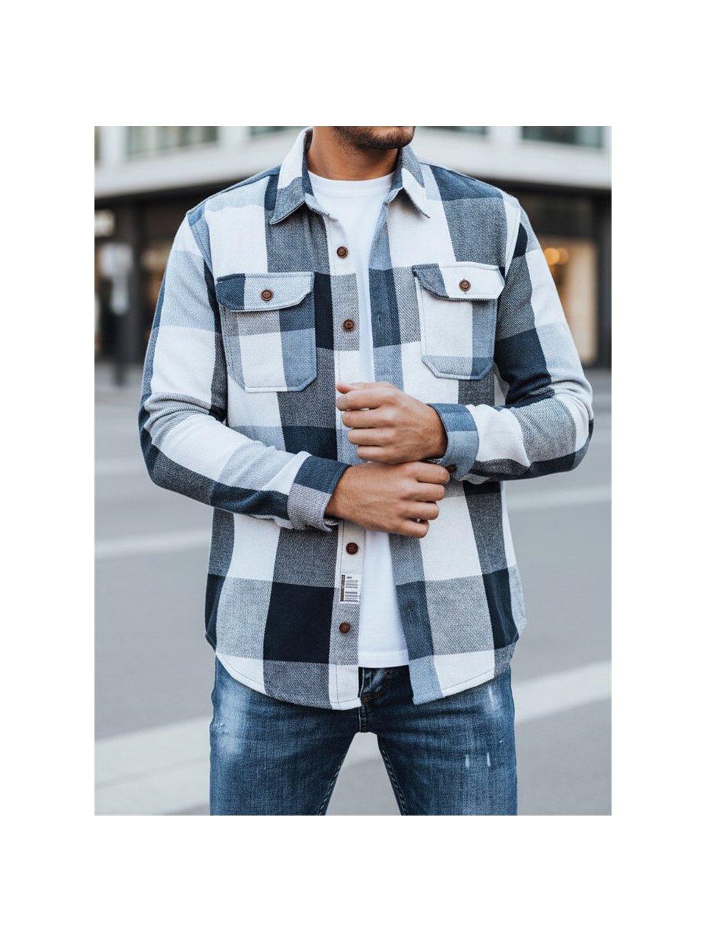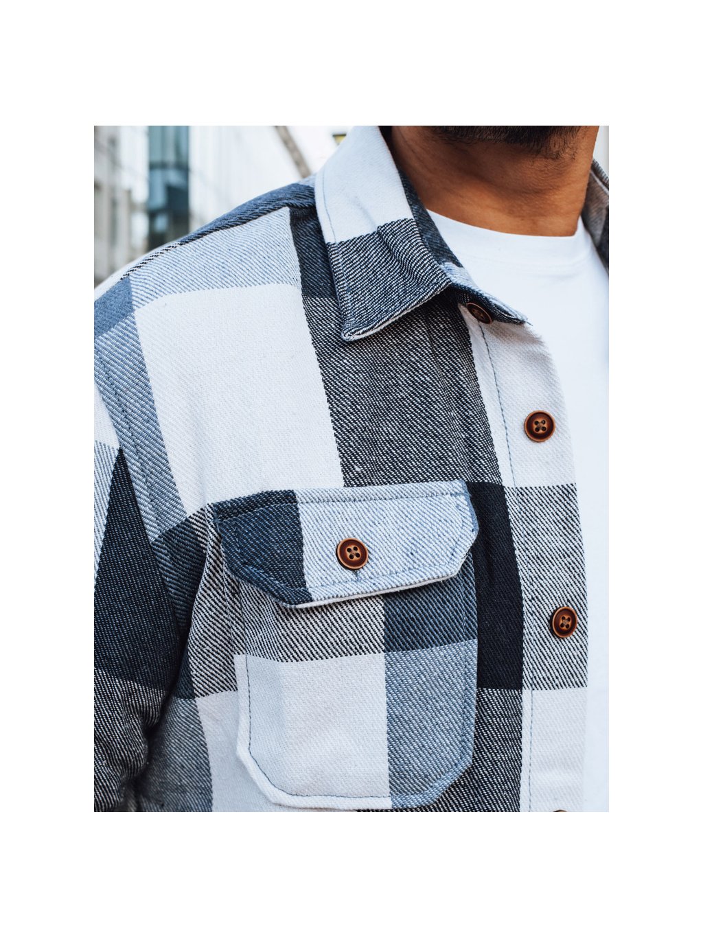 Fehér-kék férfi kockás flaneling