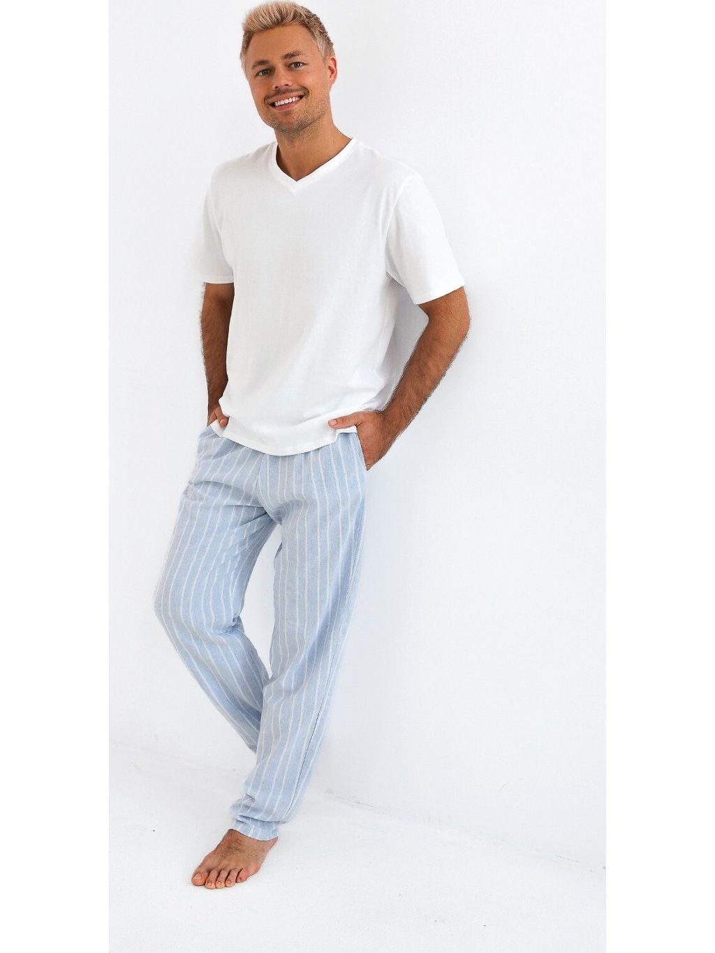 - klasszikus pamut póló V-nyakú szabással és rövid ujjal
