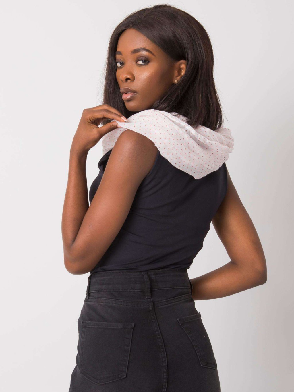 Fehér kendő piros pöttyökkel