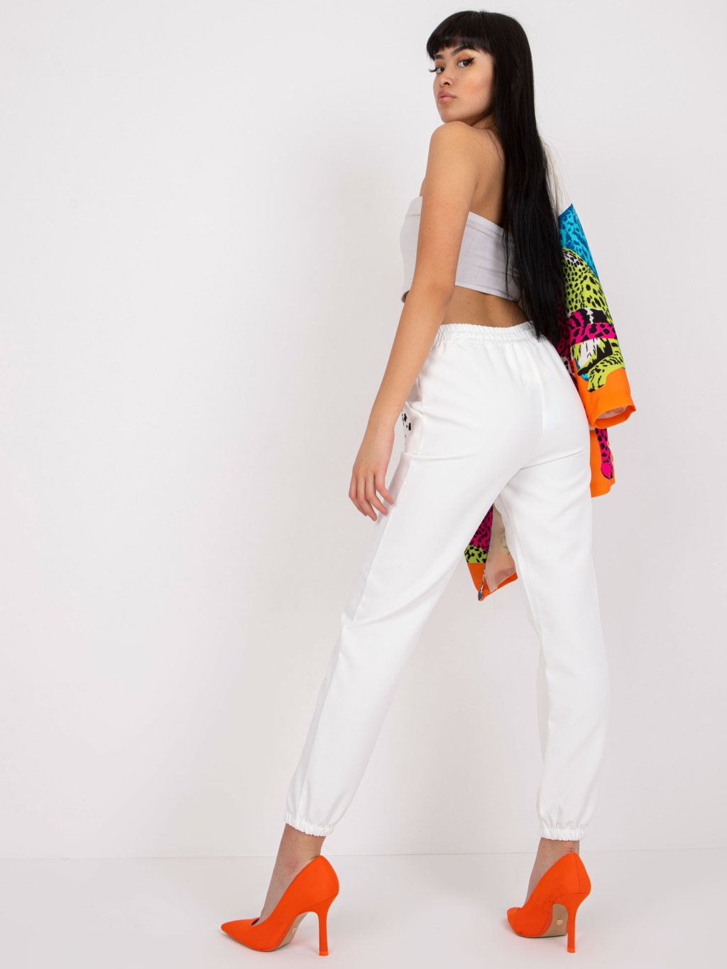 Fehér melegítőnadrág steppelt csíkkal