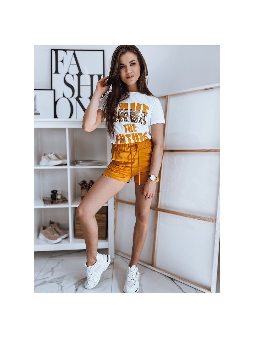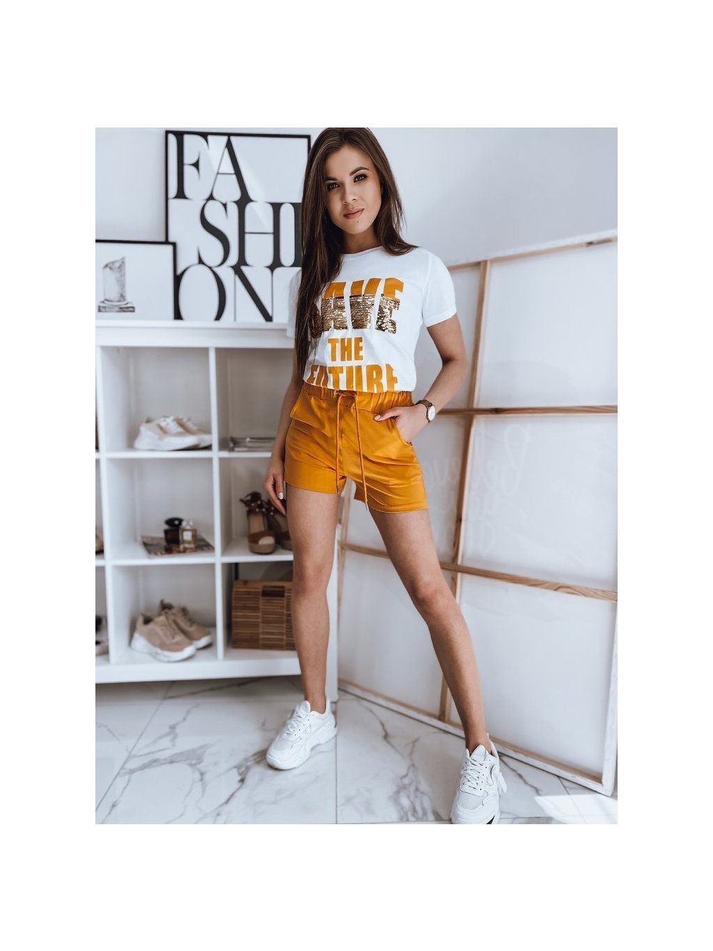 Fehér-mustár színű rövidnadrág és póló szett Save