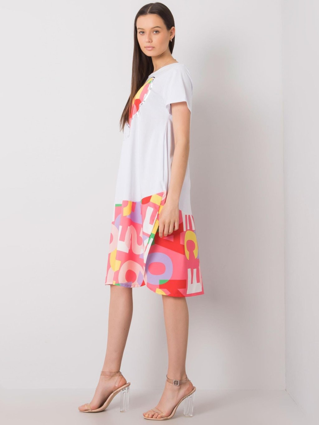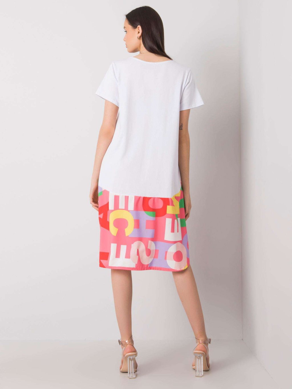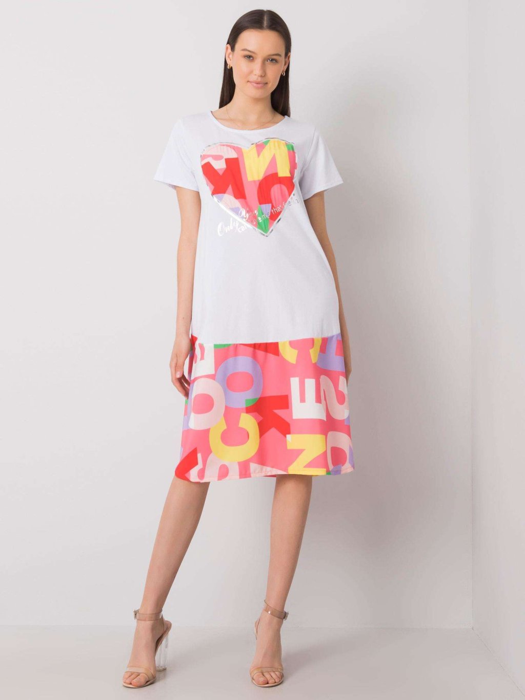Fehér női ruha rózsaszín mintával