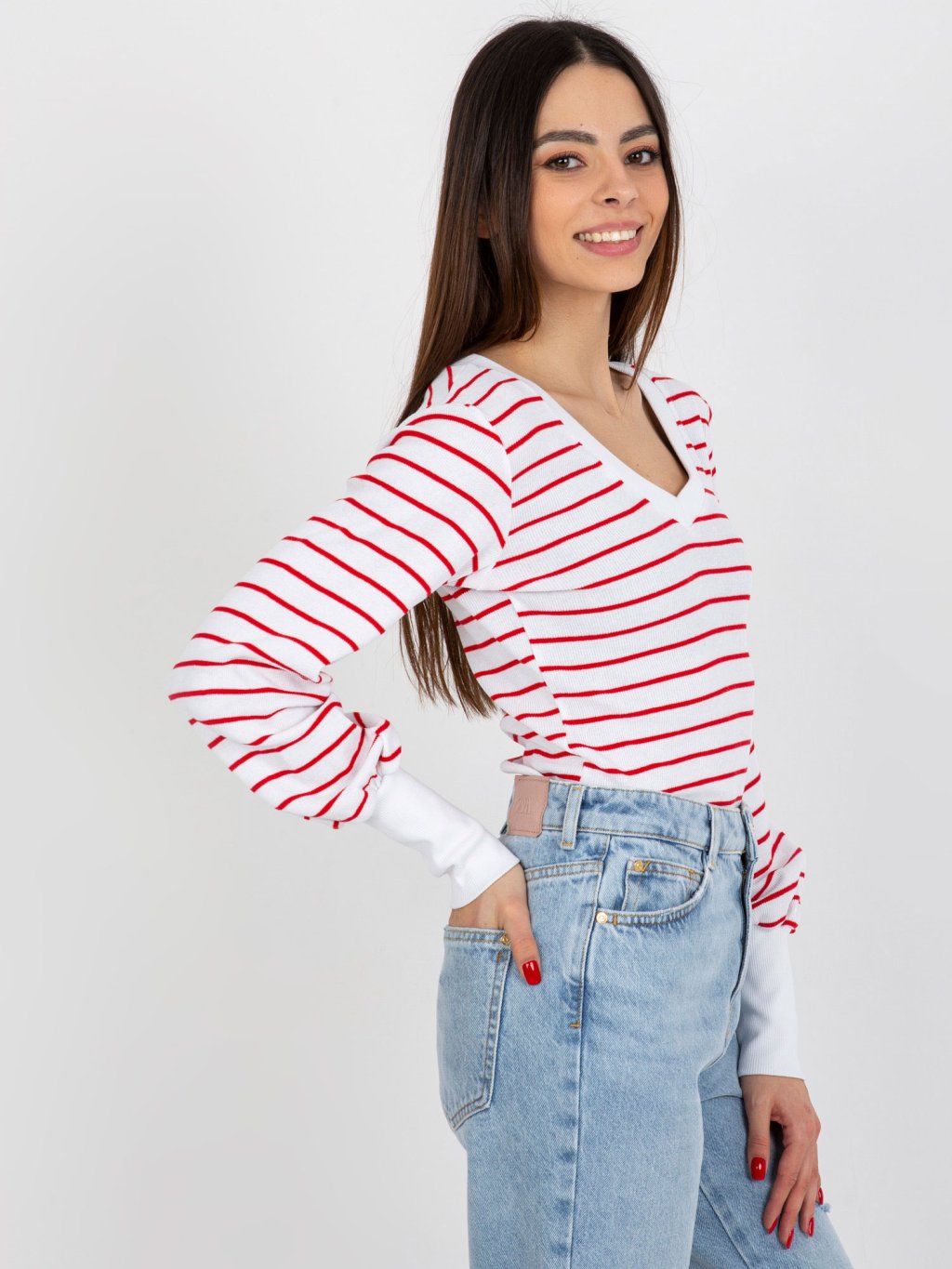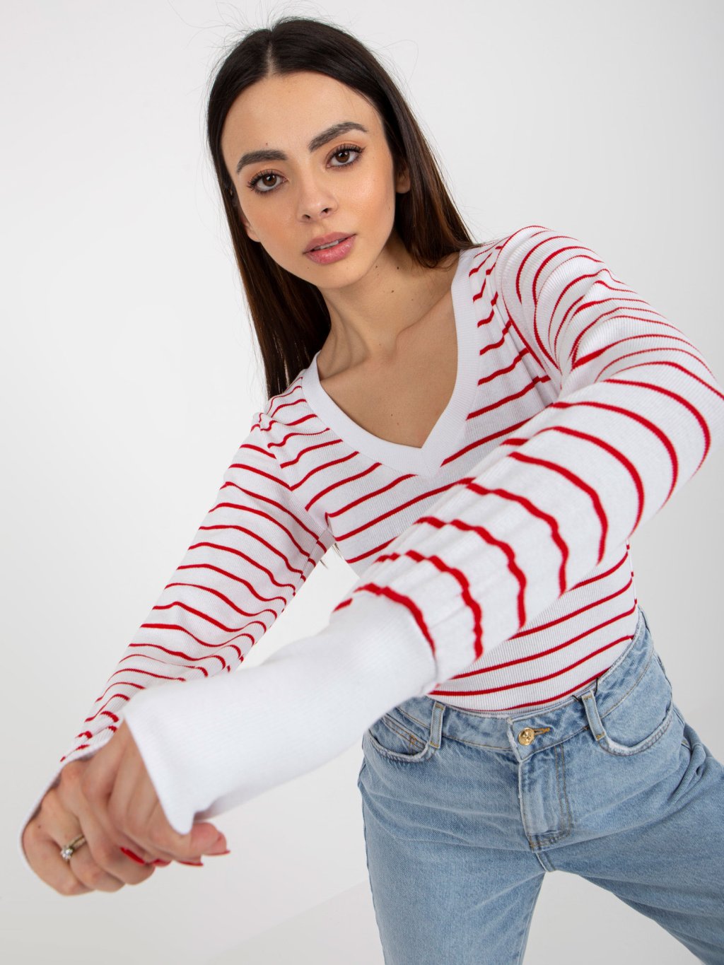 Fehér-piros csíkos póló  hosszú ujjal (Méret S/M)