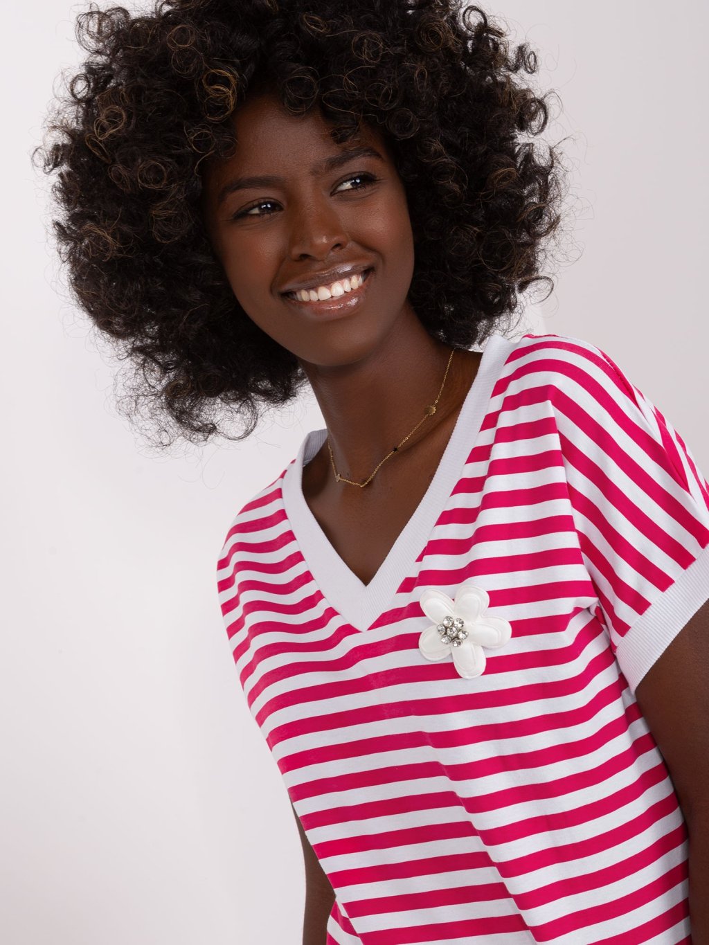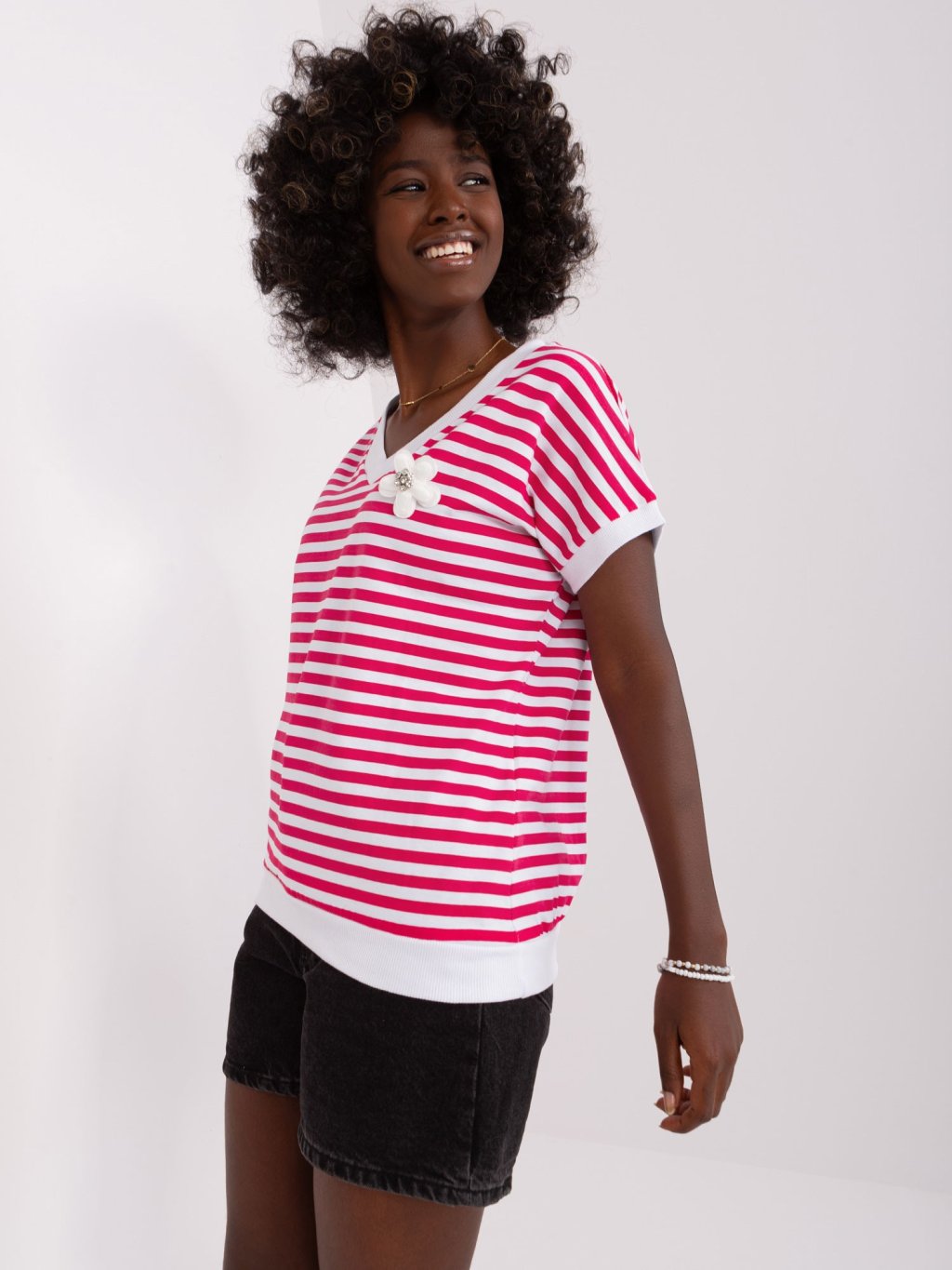 Fehér-rózsaszín csíkos póló