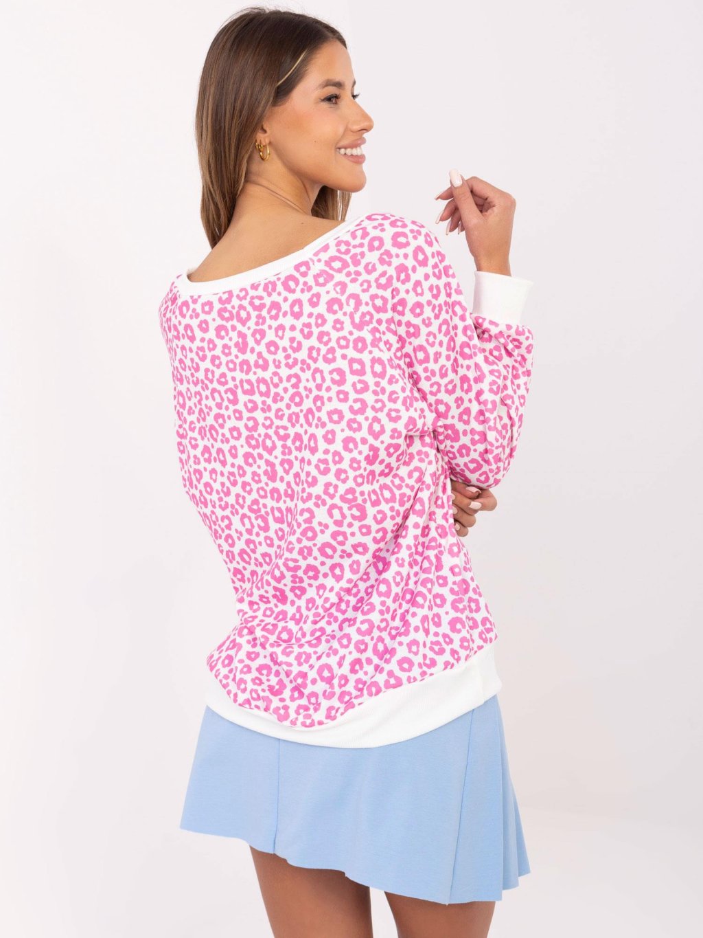 Fehér-rózsaszín női oversize blúz leopárd mintával