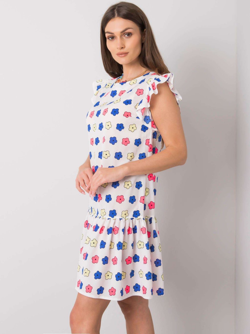 Fehér ruha színes virágokkal