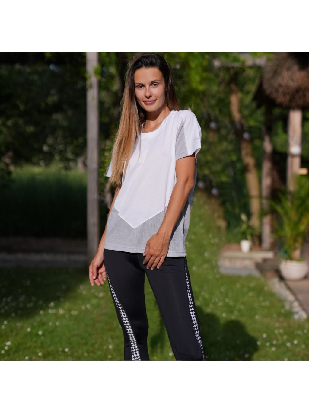 Fehér-szürke könnyű funkcionális rövid ujjú póló