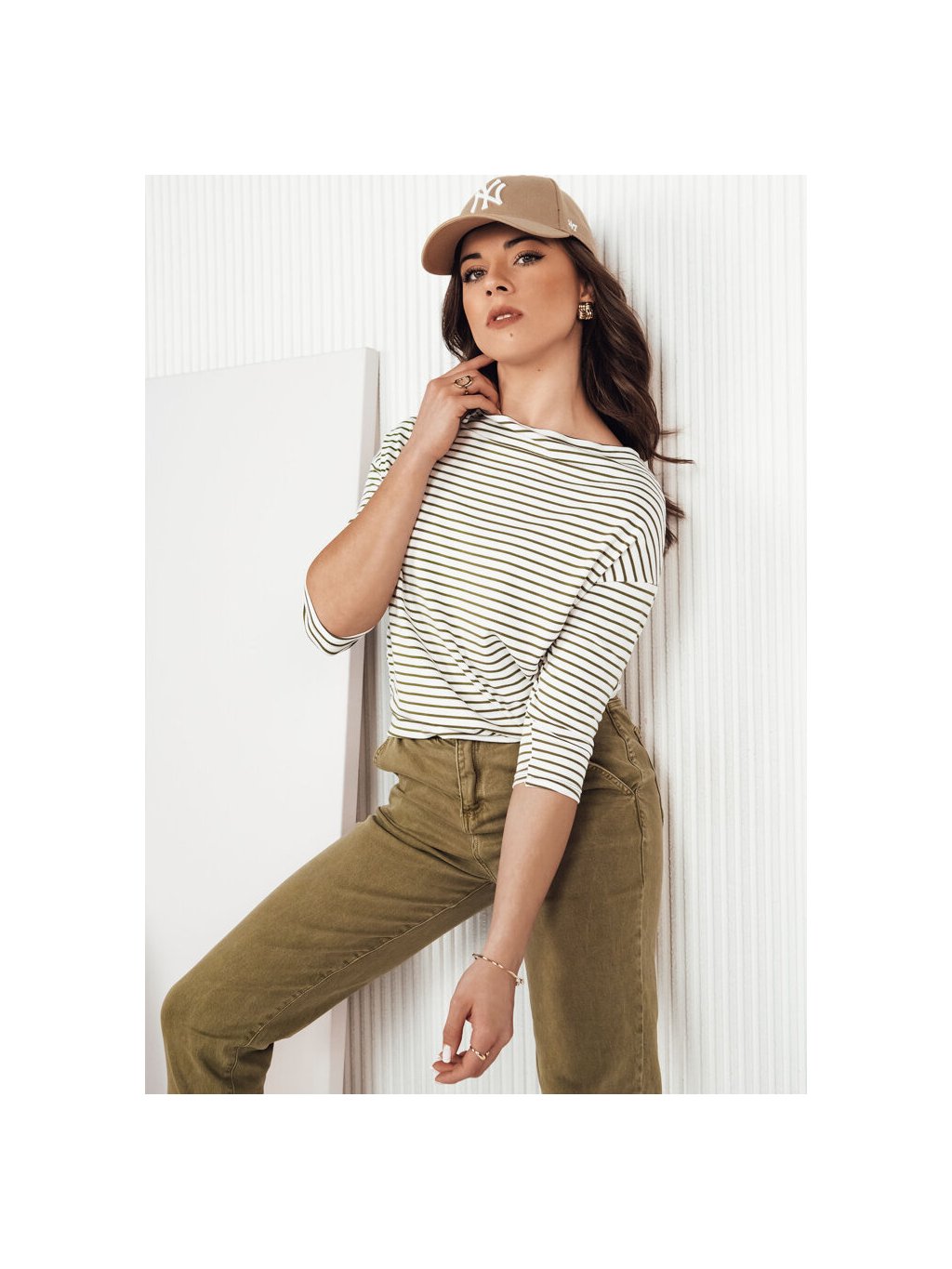 Fehér-zöld csíkos hosszú ujjú póló APRICALE