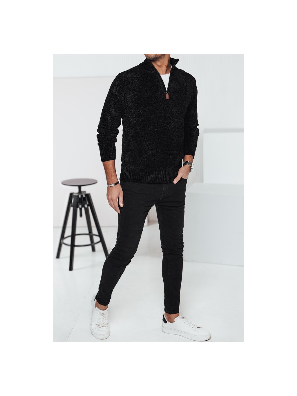 Fekete, elegáns férfi pulóver galléránál cipzárral