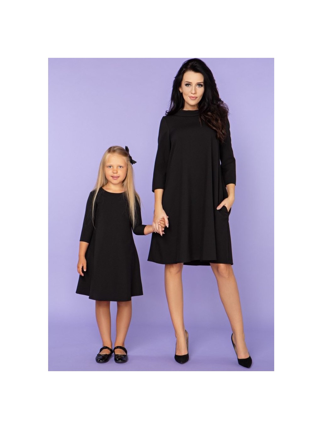 Fekete anya és lánya parti ruha lányoknak fodros ujjakkal