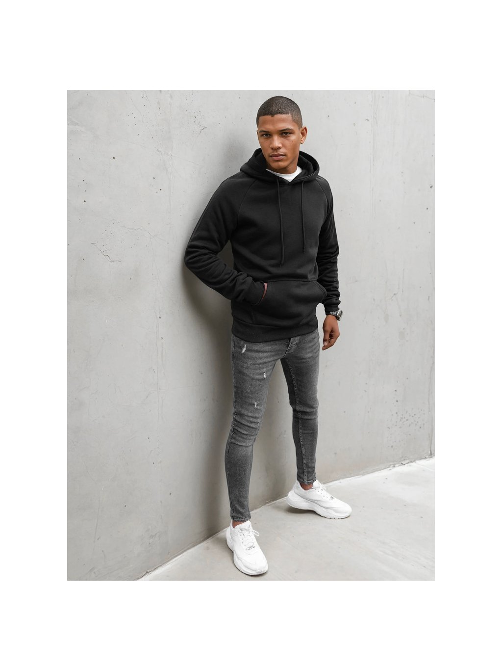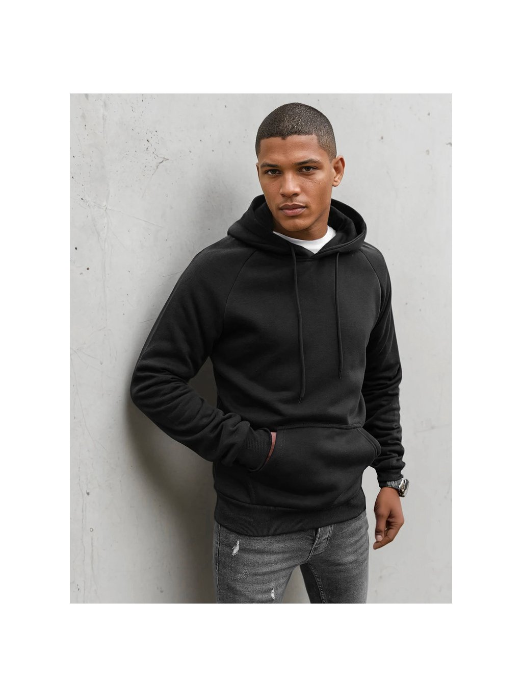 Fekete basic pulóver kapucnival