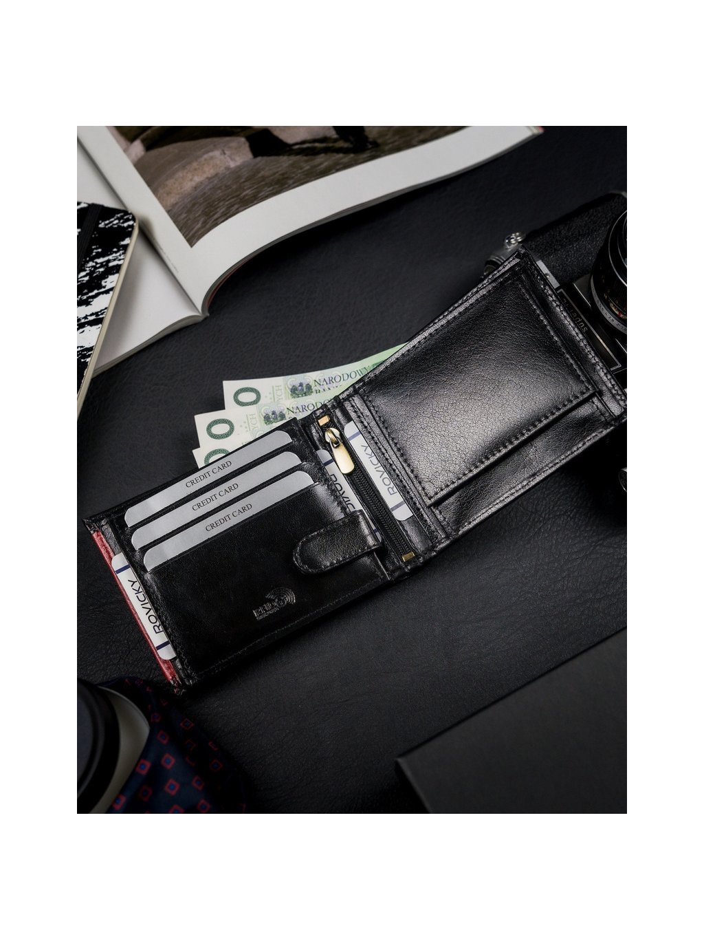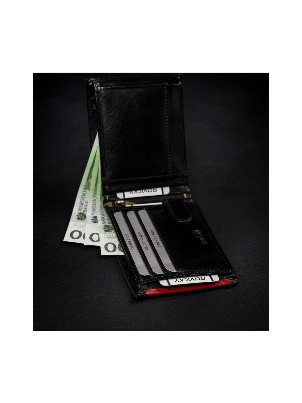 - 2 széles zseb a bankjegyek számára