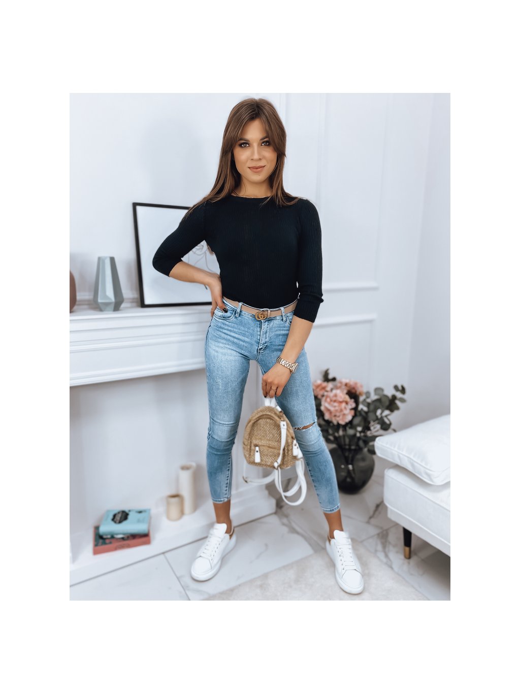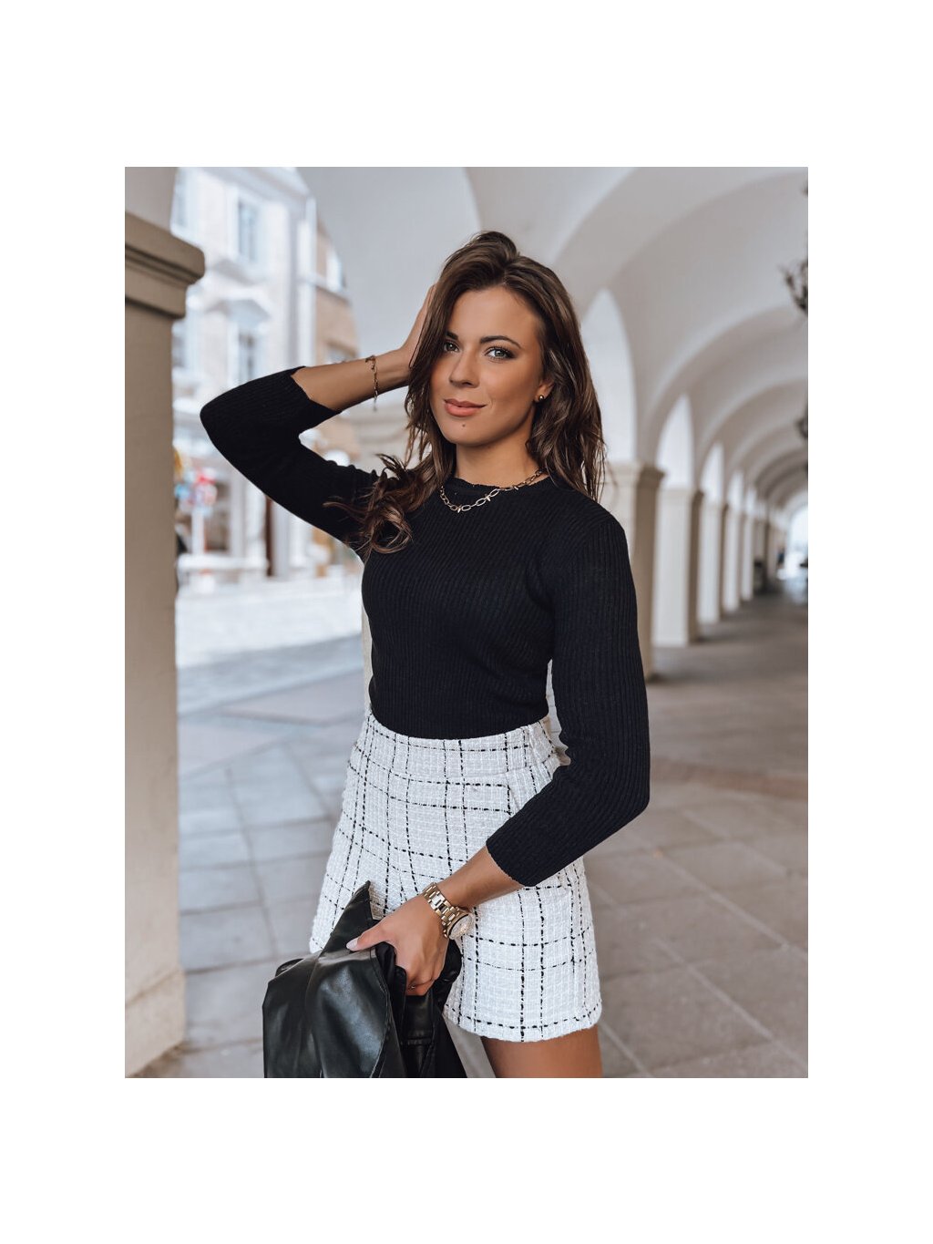 Fekete bordás pulóver AURINA