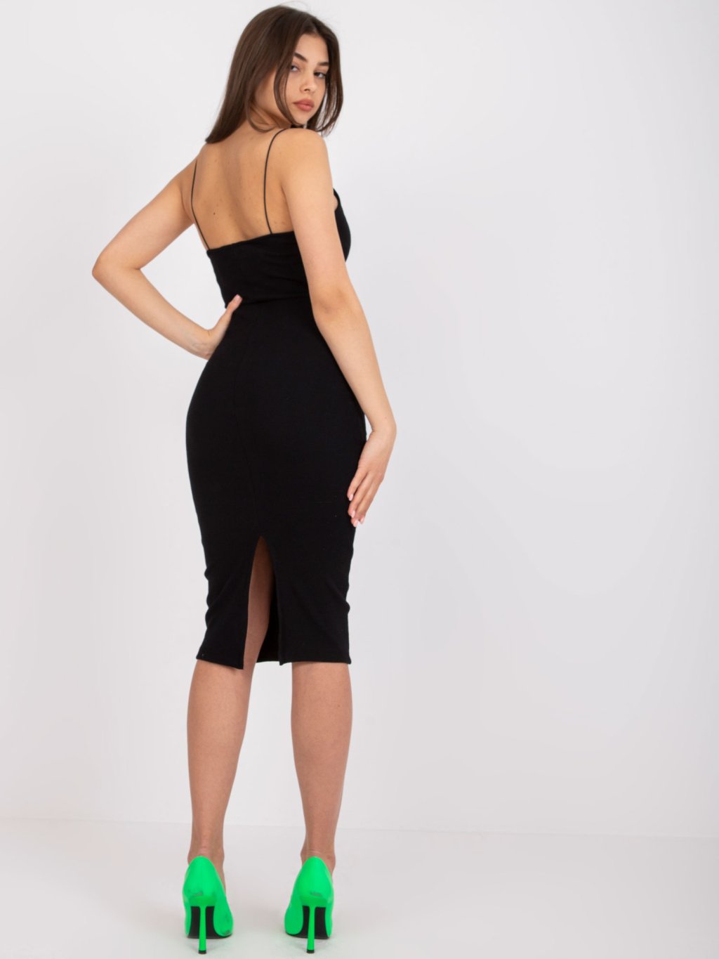 A képeken látható modell 172 cm magas, mellkerülete 88 cm, derékbősége 61 cm, csípőbősége 92 cm.