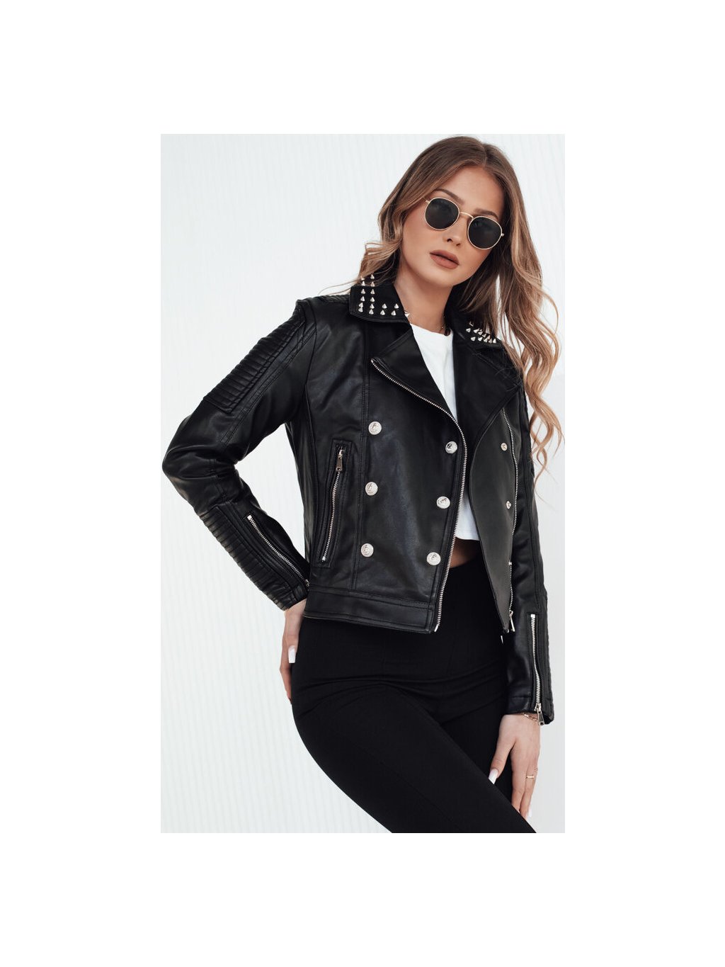 Fekete bőrdzseki szegecsekkel és díszgombokkal TRUCCO