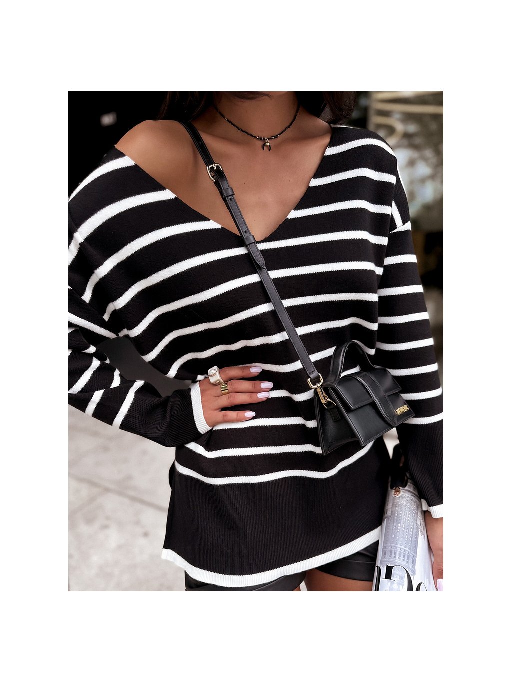 Fekete csíkos oversize pulóver HECATE