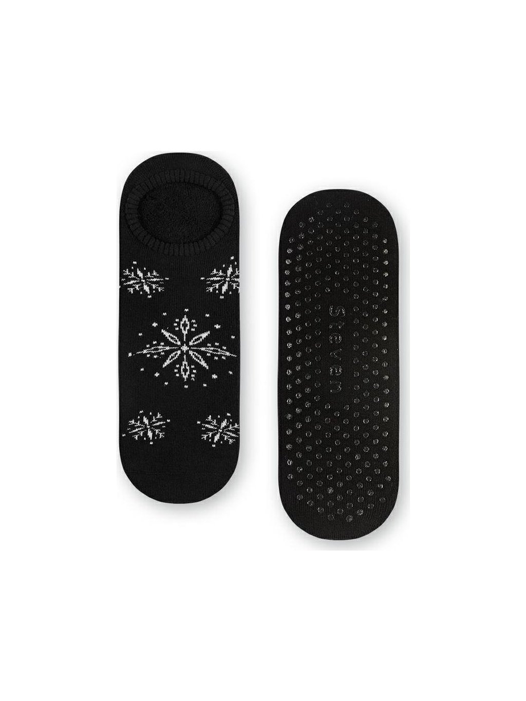 Fekete csúszásgátló zokni hópehely motívummal Art.132