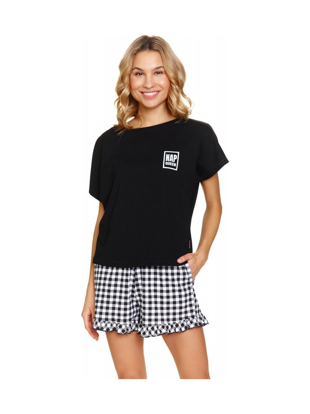 Fekete-fehér női rövid pizsama kockás rövidnadrággal NAP QUEEN