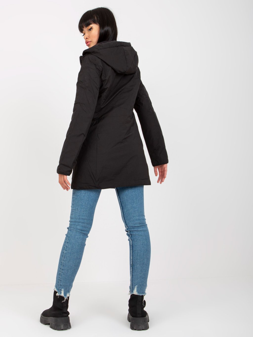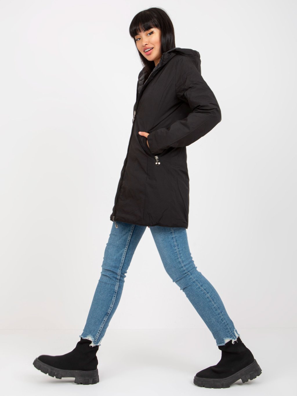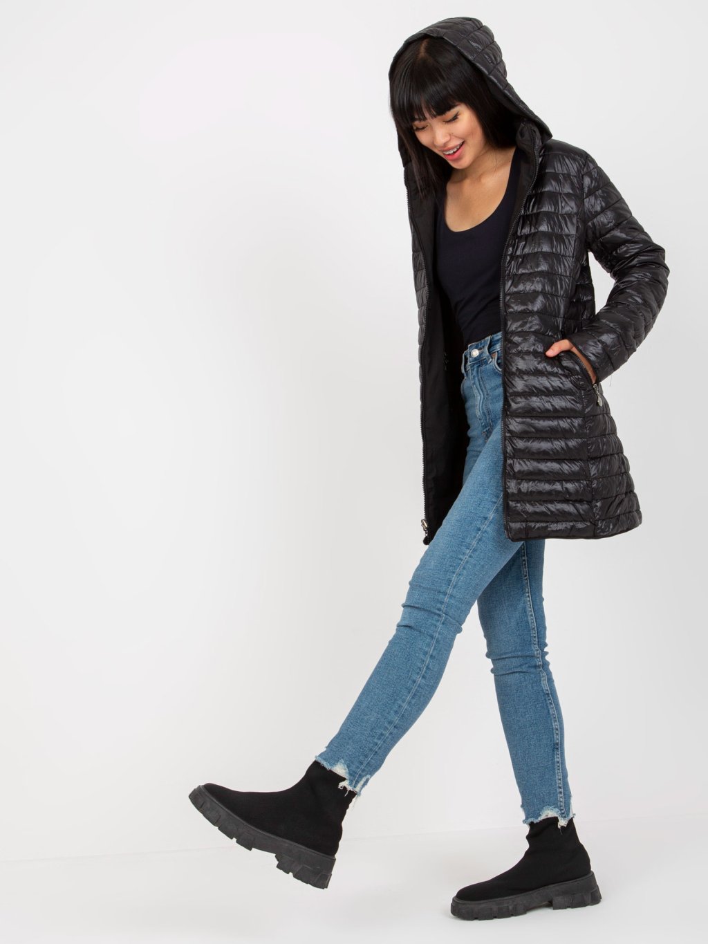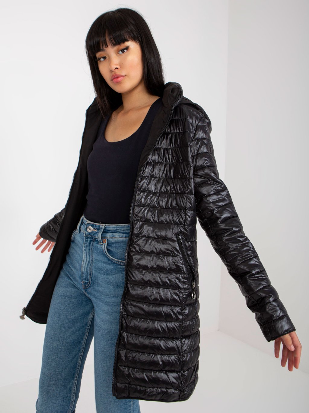 Fekete fényes steppelt kabát