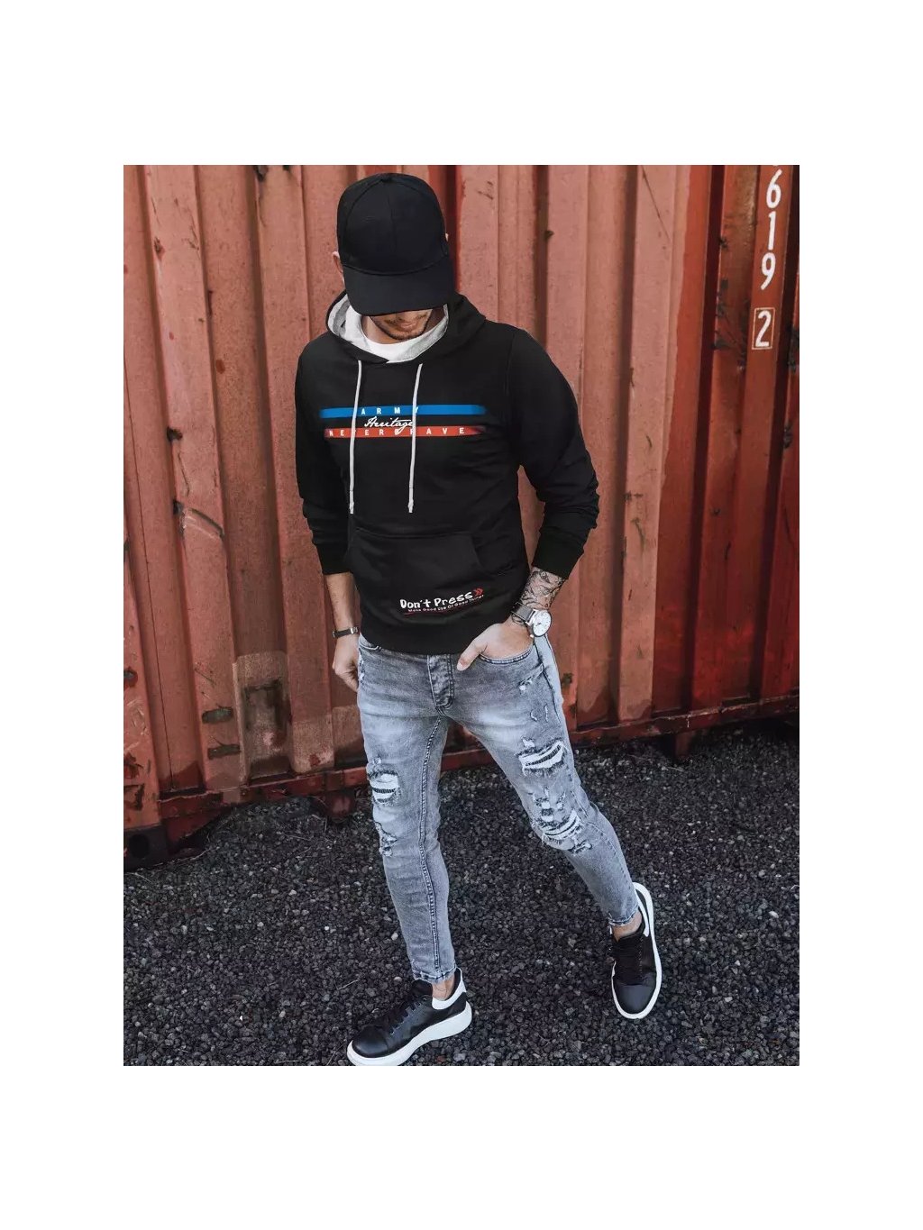 Fekete férfi pulóver mintával