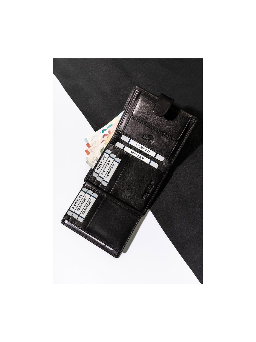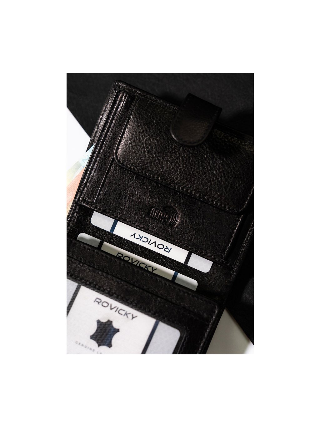 Fekete férfi zárható bőr pénztárca Rovicky L236