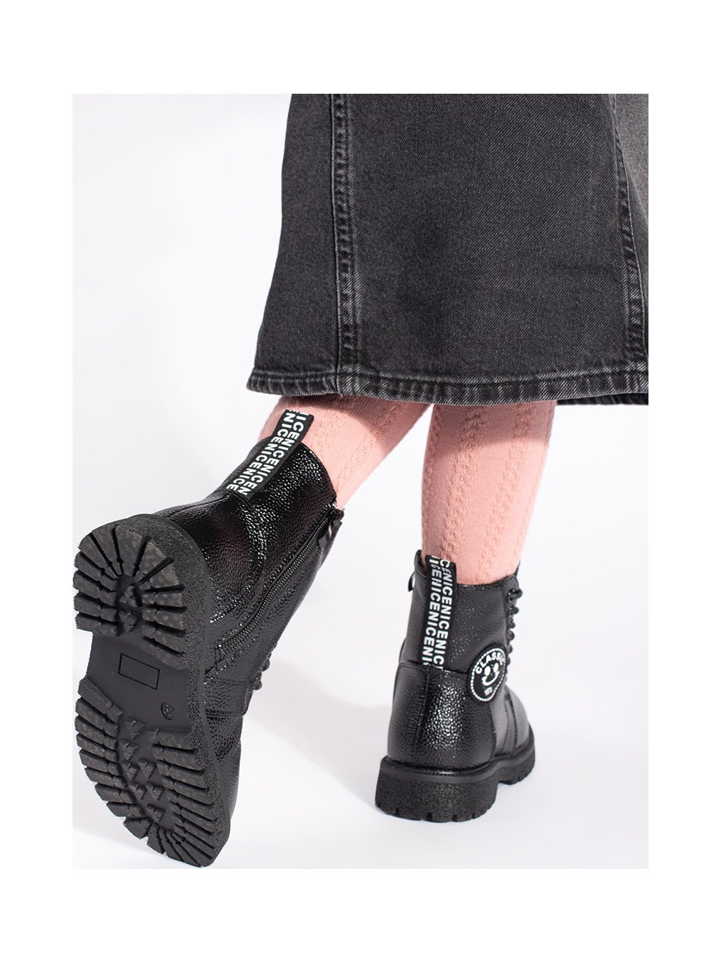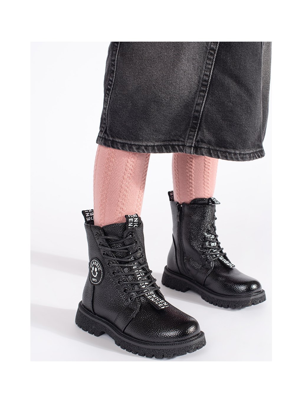 Fekete fűzős bokacsizma szőrmével szigetelve