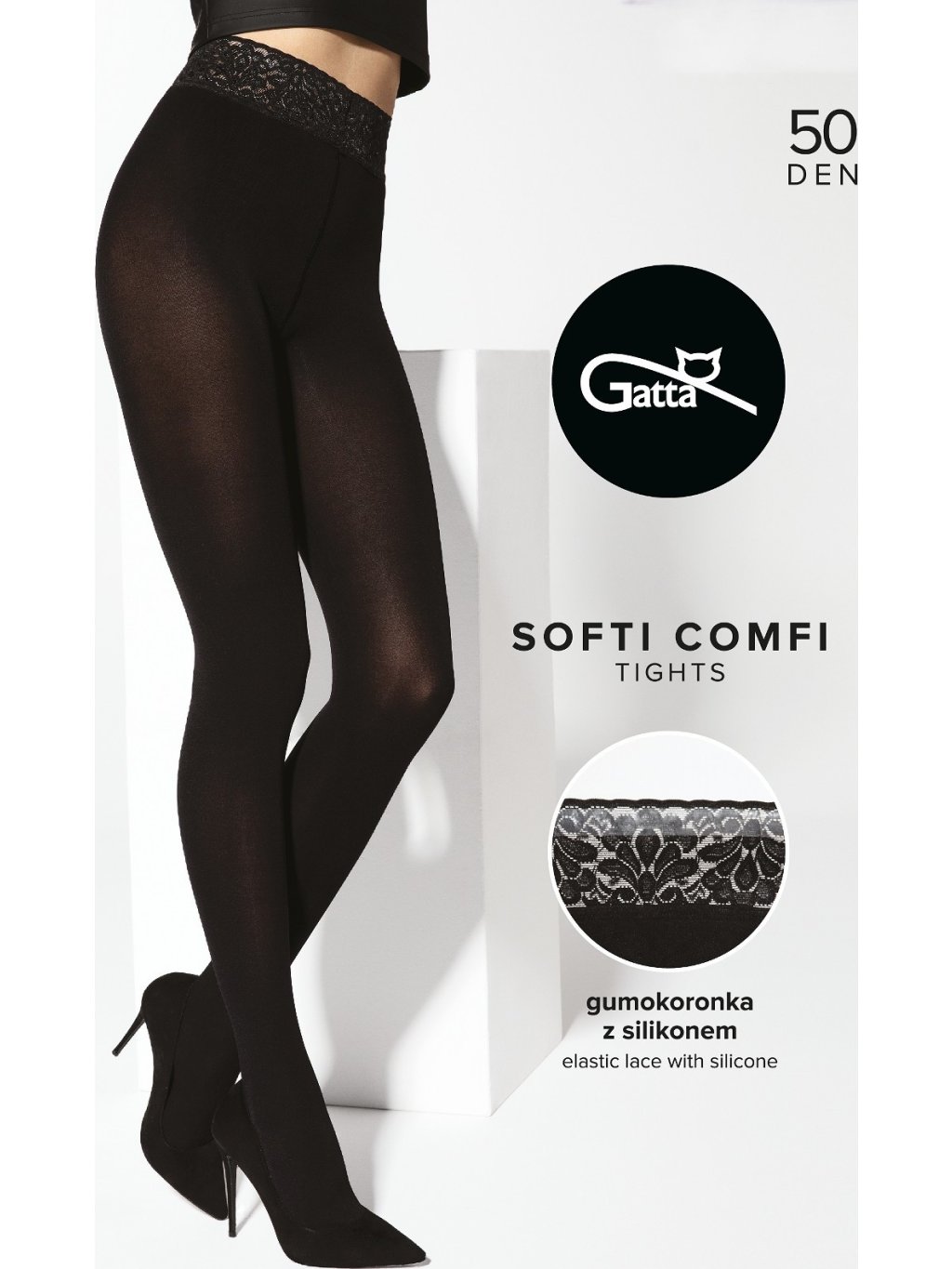Fekete harisnya deréknál csipkével Gatta Softi-Comfi 50 den