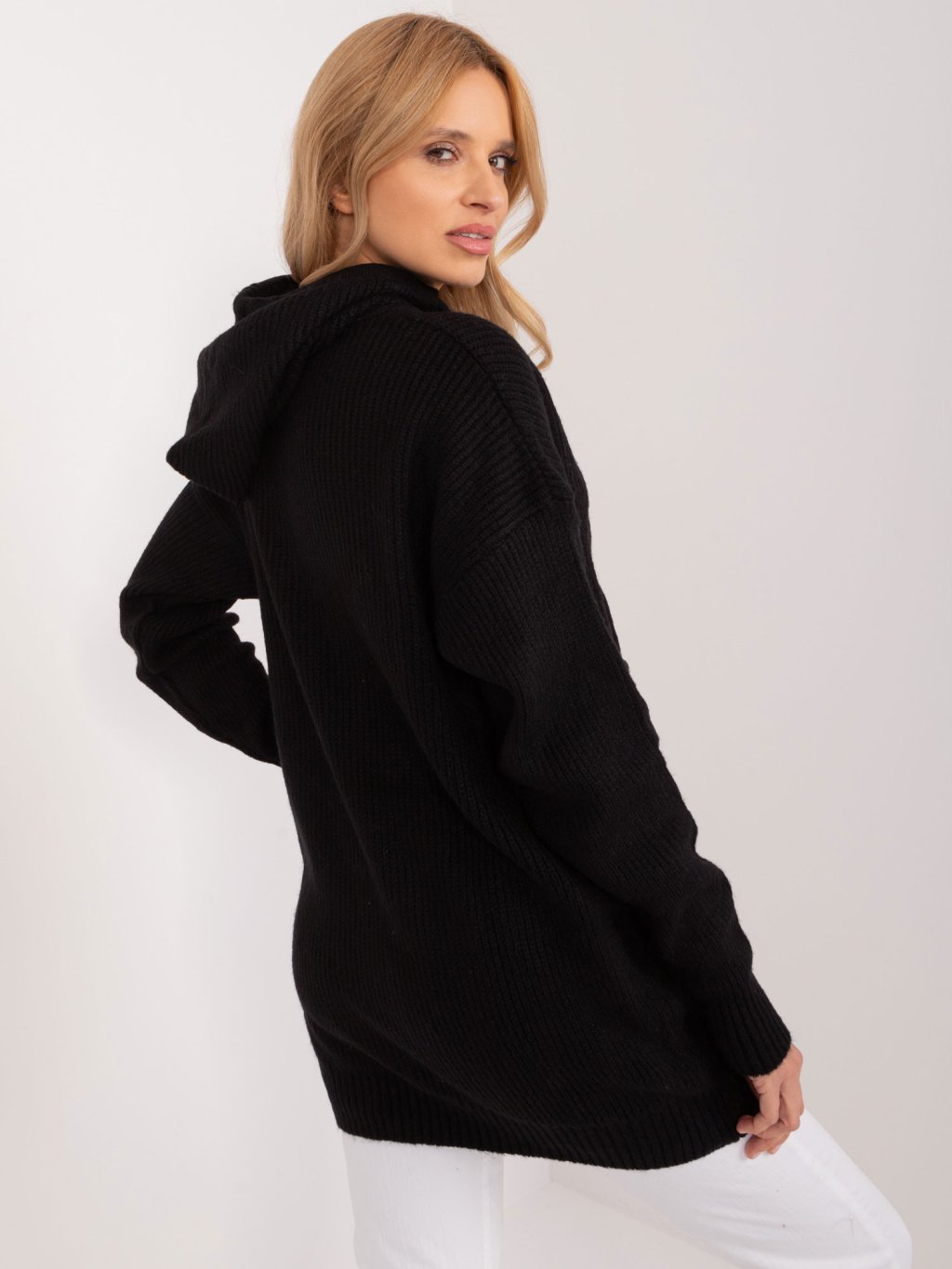 Fekete hosszú pulóver kapucnival