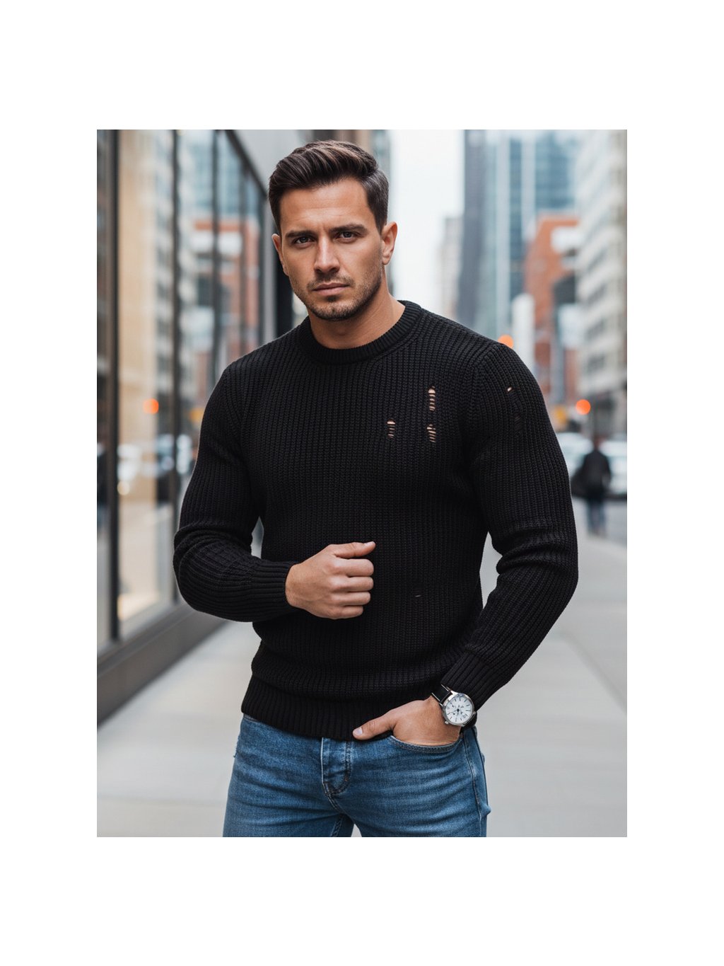 Fekete klasszikus férfi pulóver