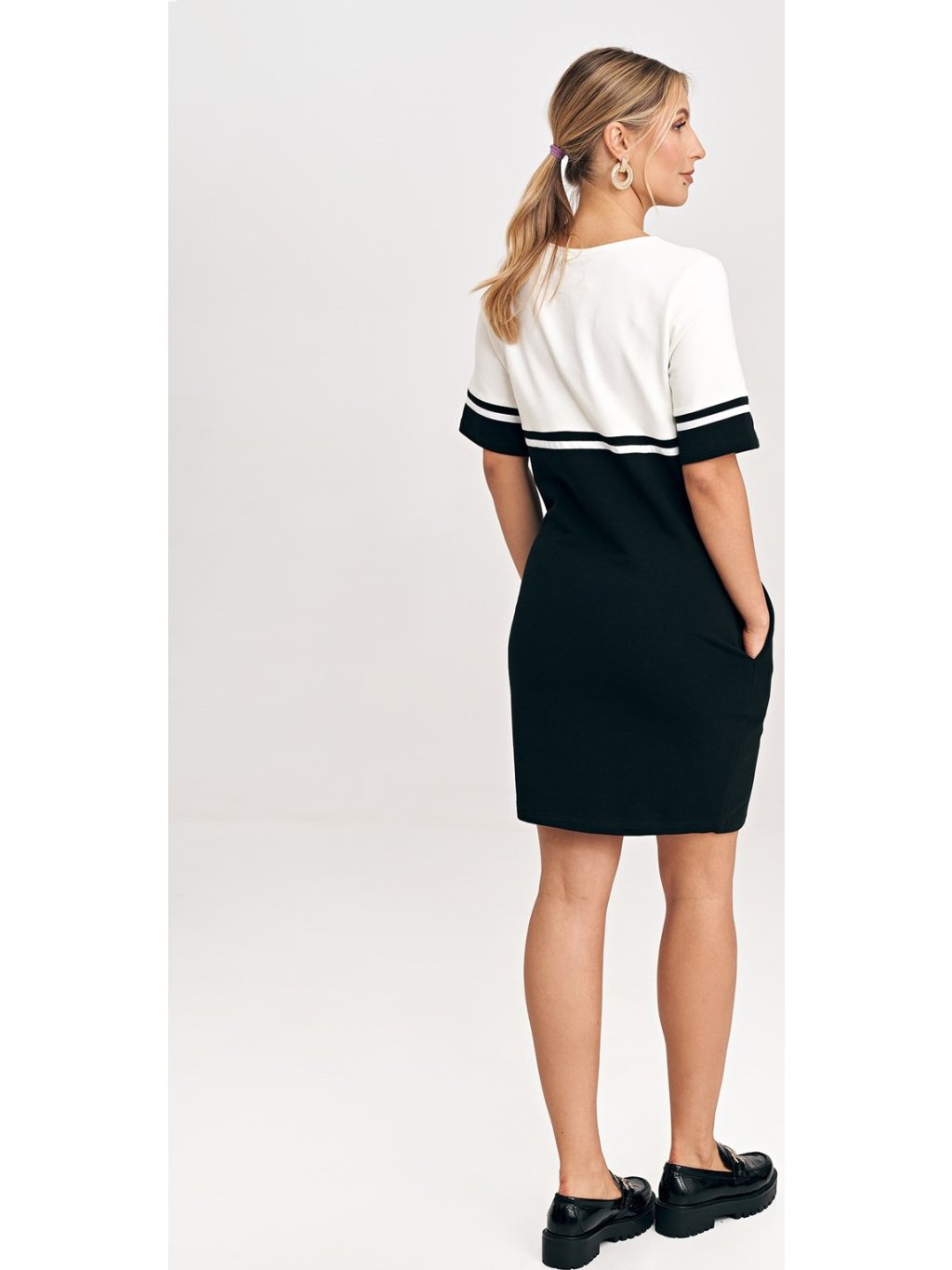 Fekete krémszínű ruha rövid ujjú