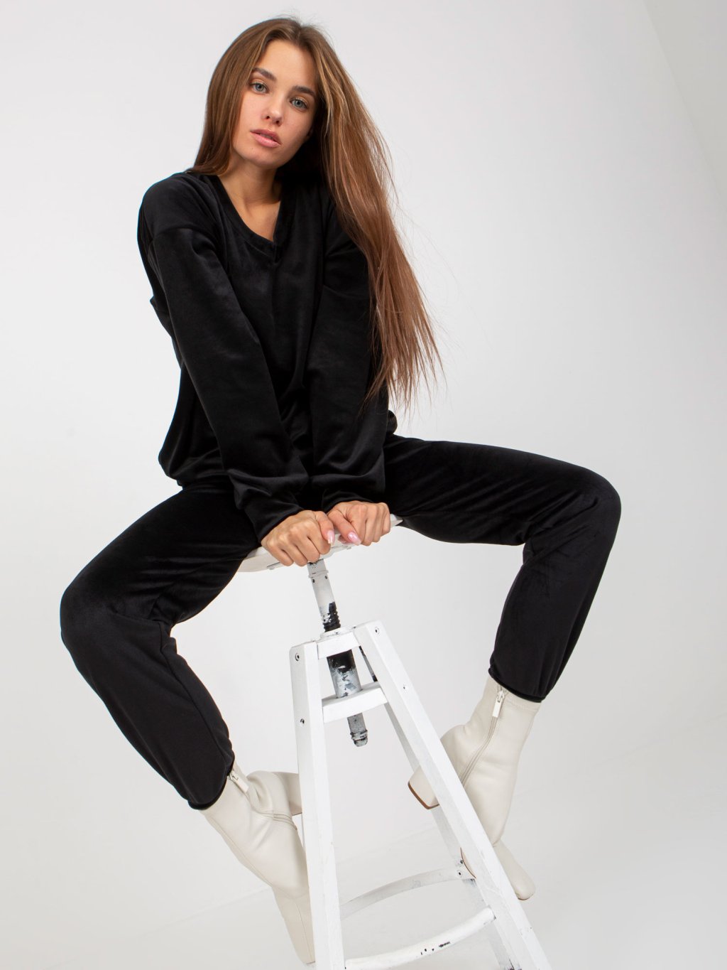 Fekete laza velúr pulóver