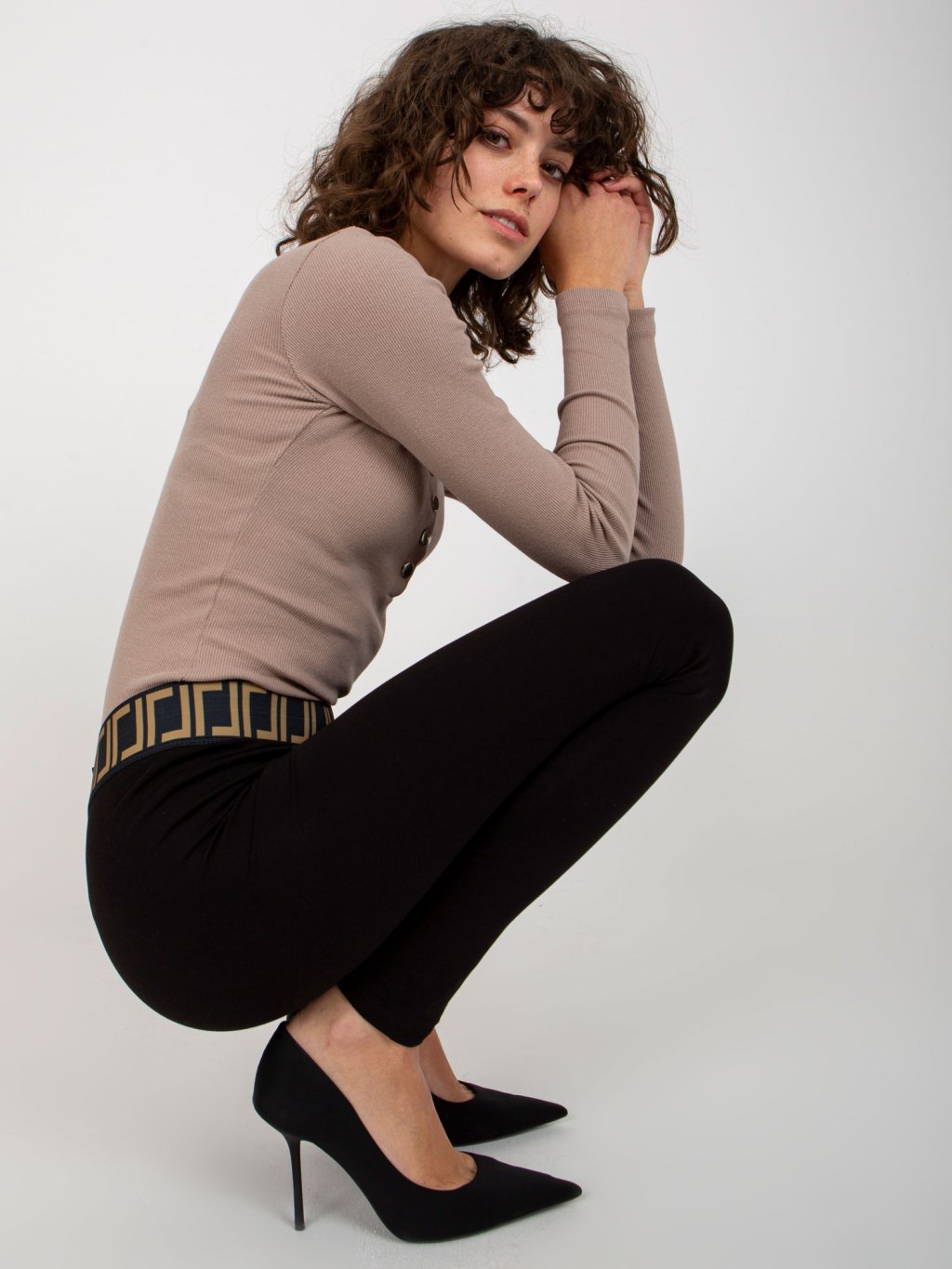 Fekete leggings dekoratív elasztikus derékszíjjal