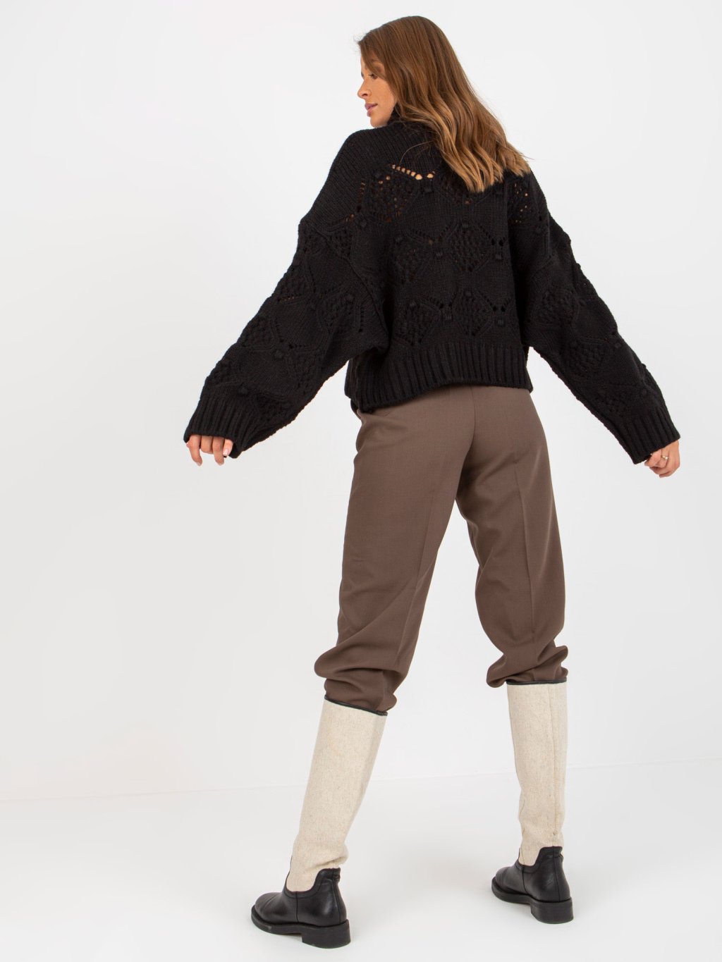 Fekete lyukacsos garbó pulóver