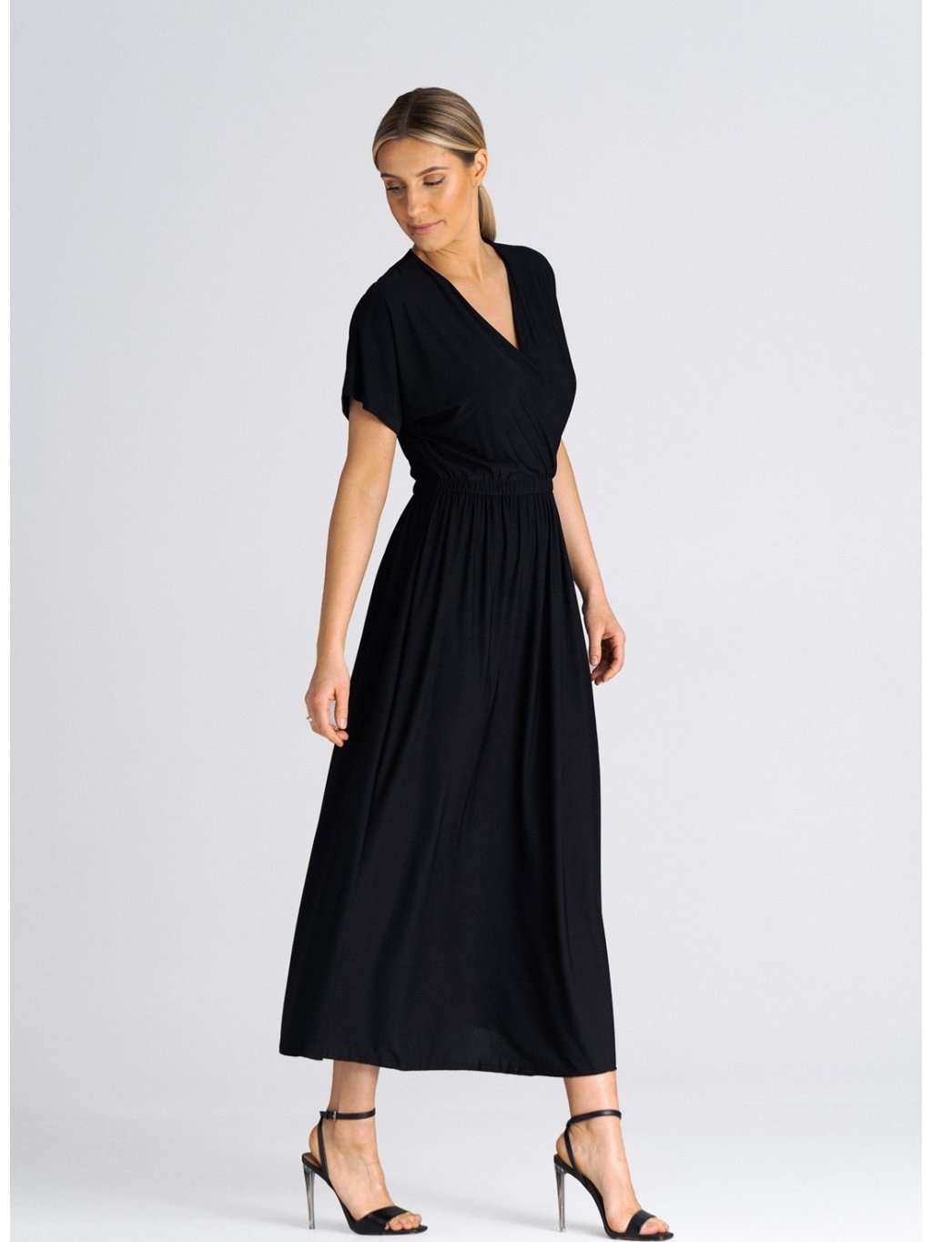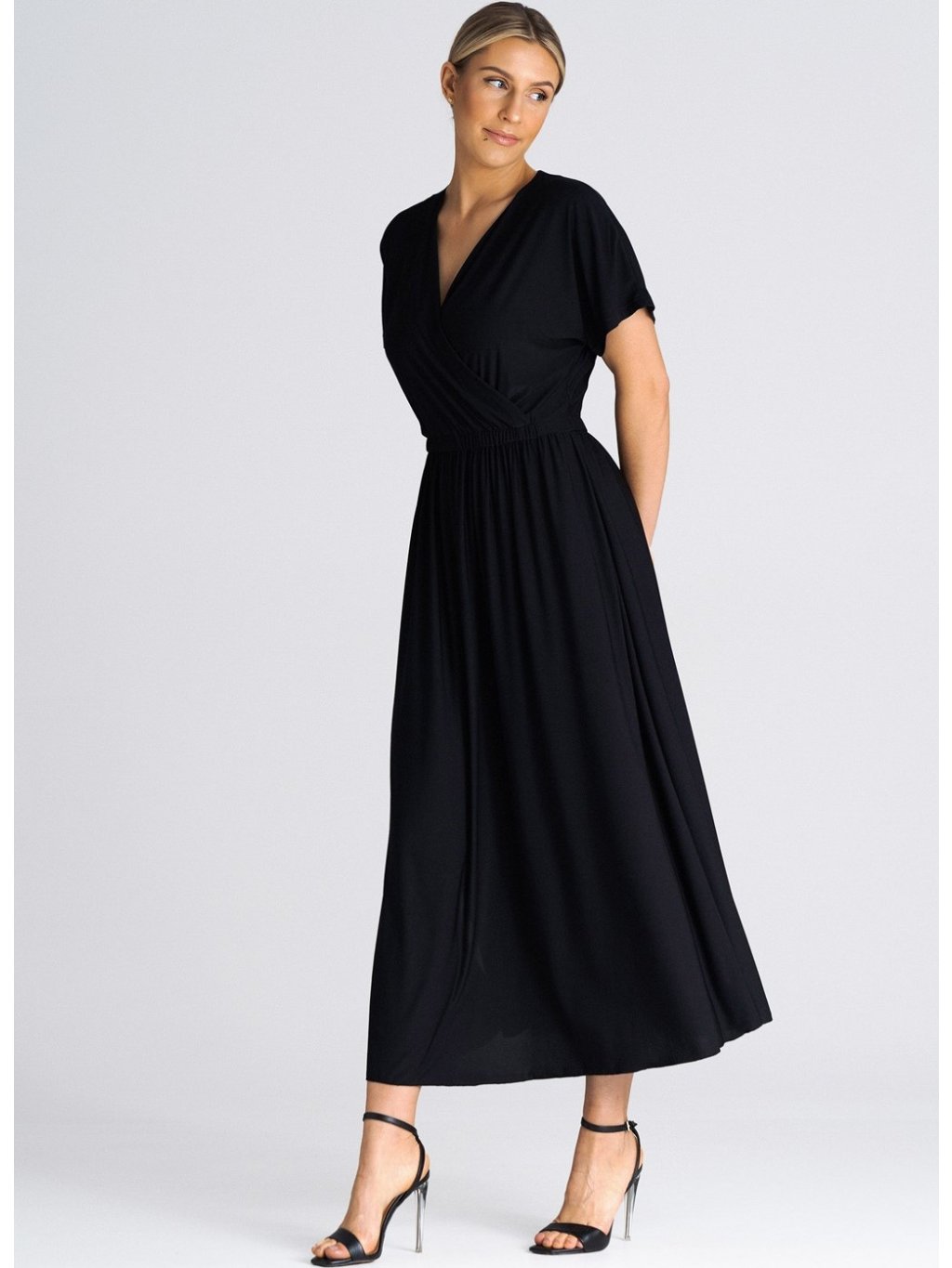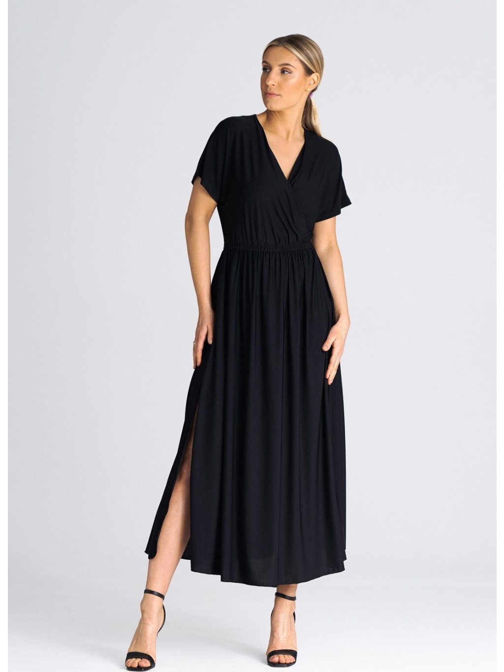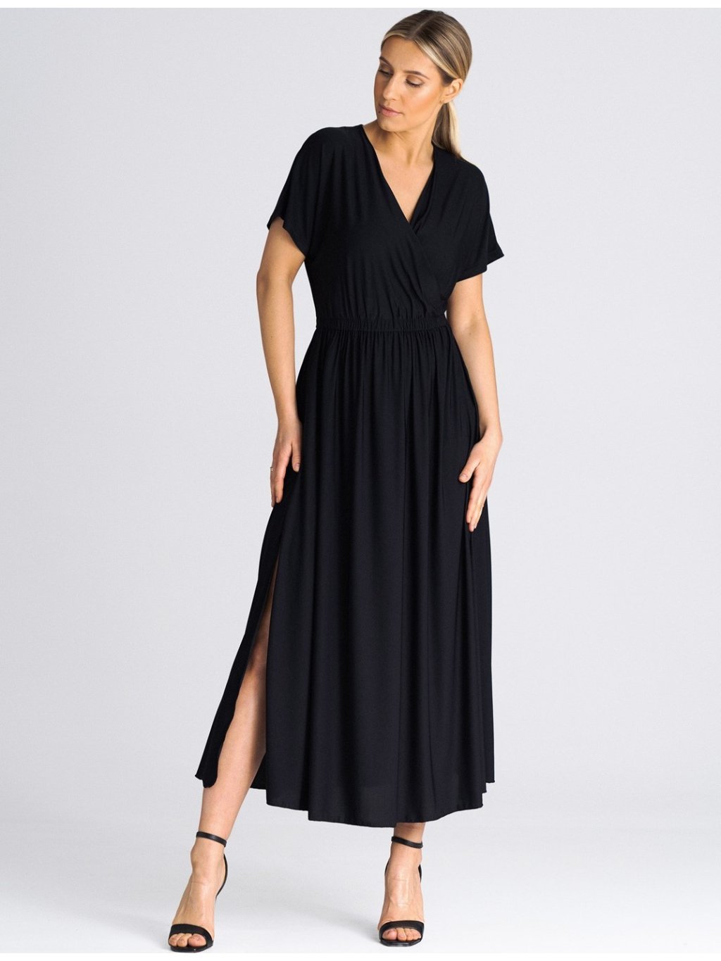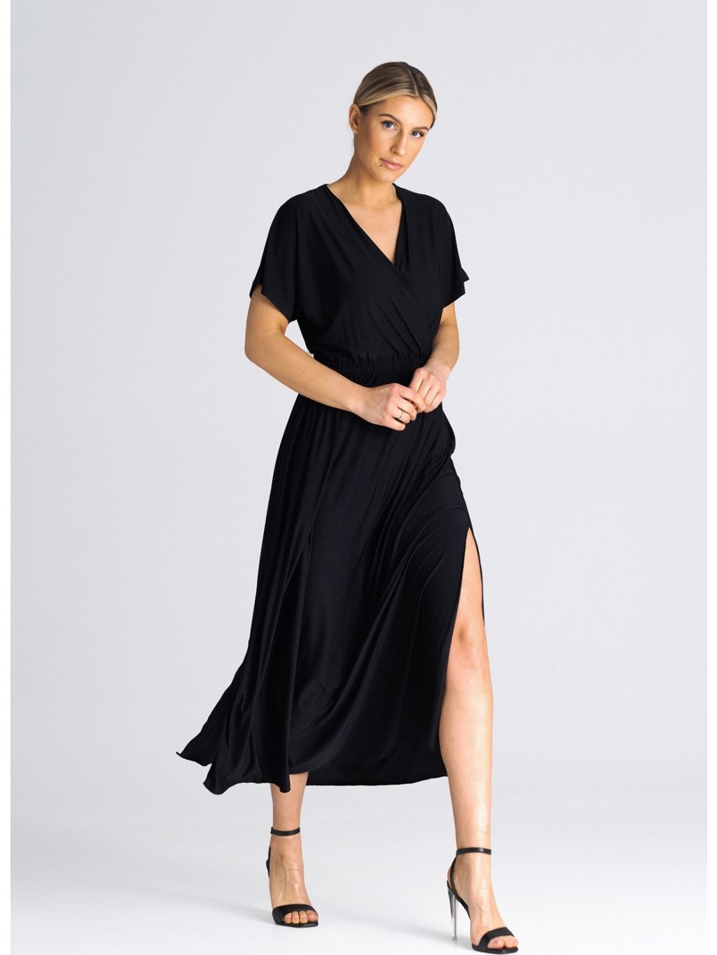Fekete midi ruha fölvágással