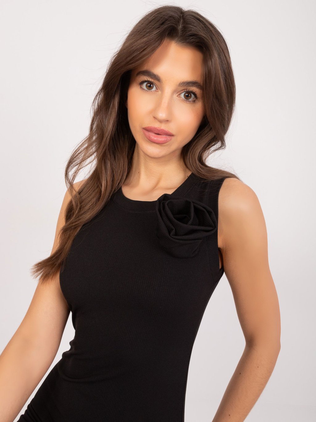 Fekete midi ruha virággal és hasítékkal