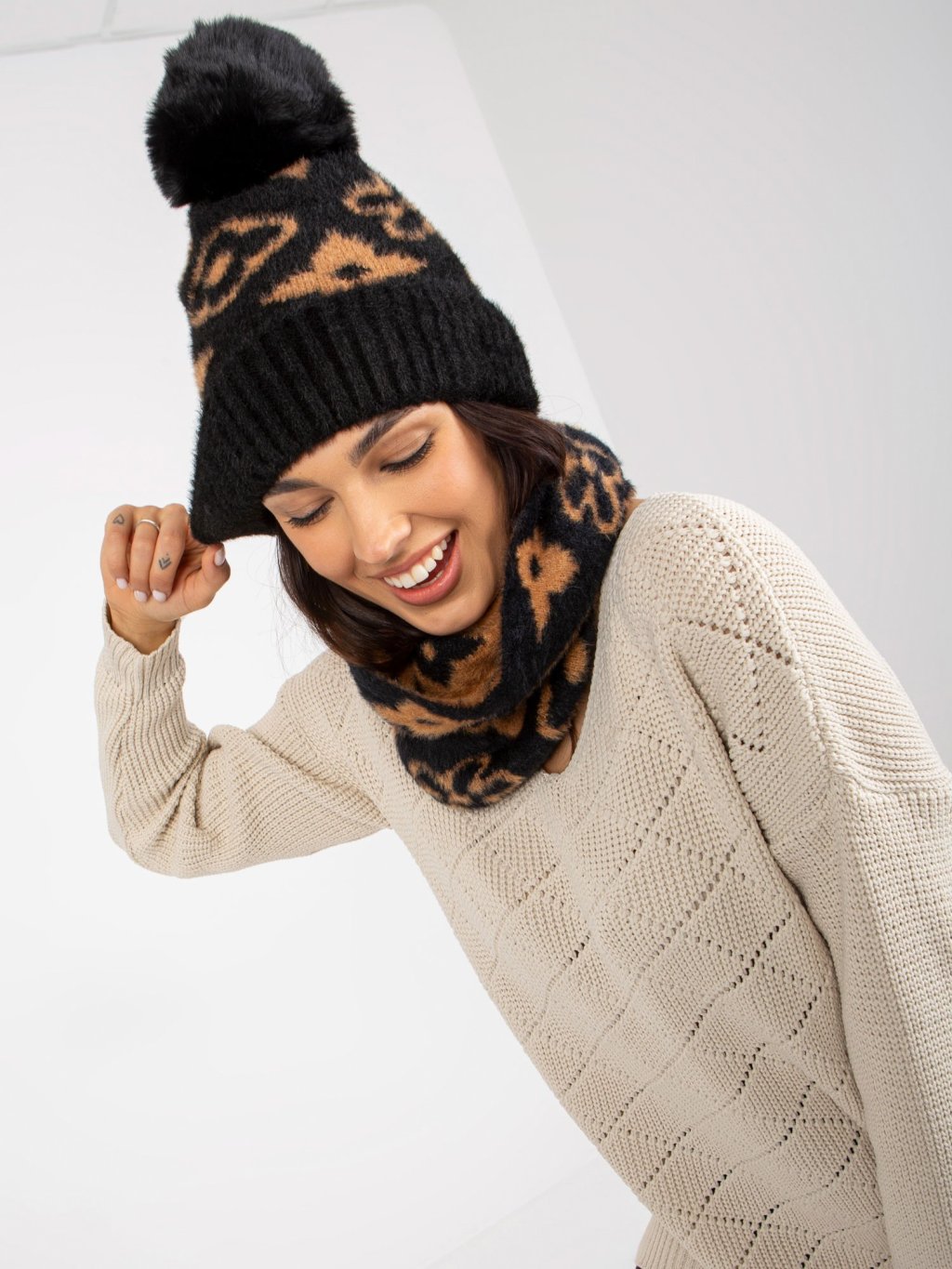 Fekete mintás meleg sapka