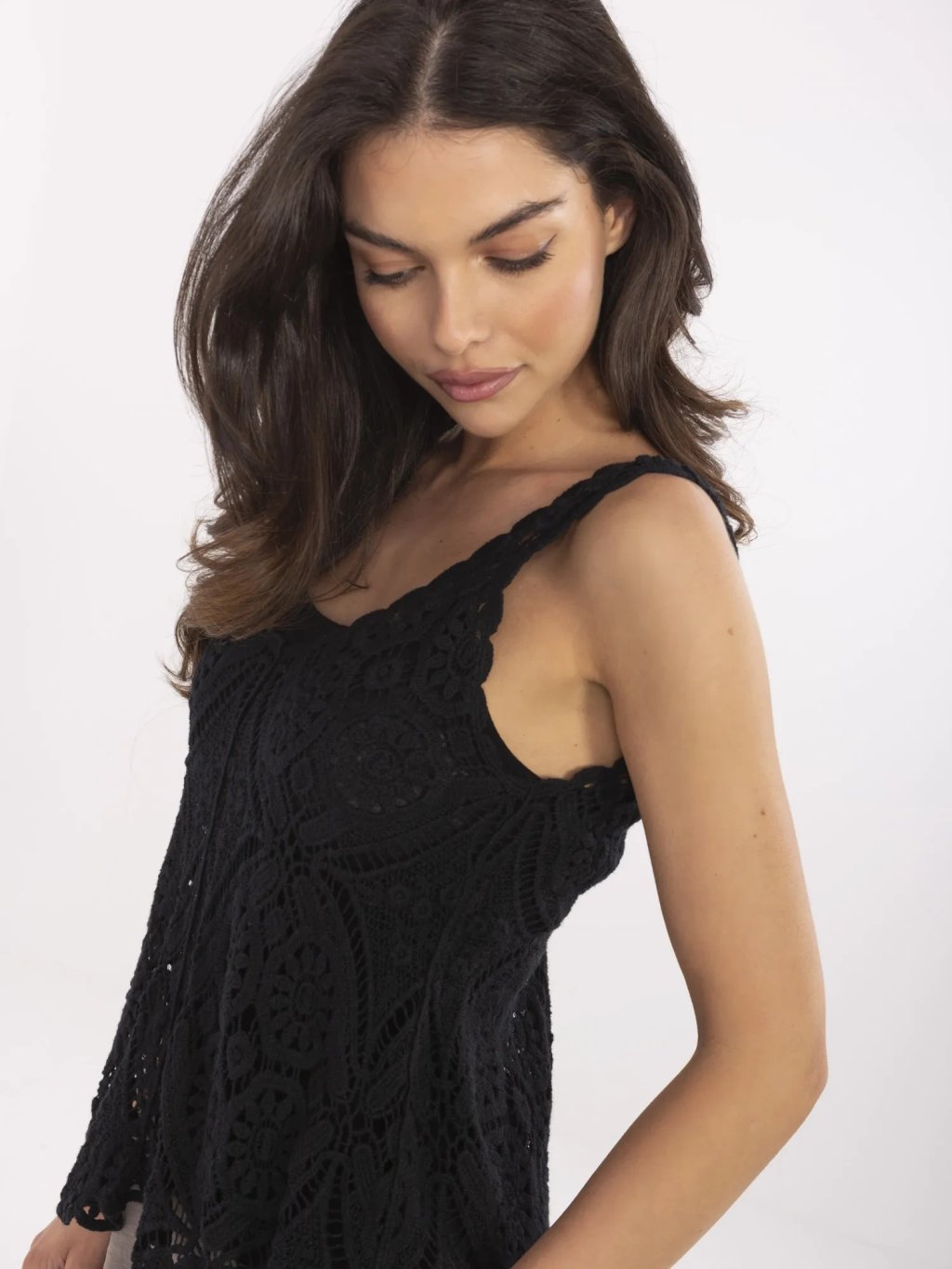 Fekete női áttört ujjatlan trikó