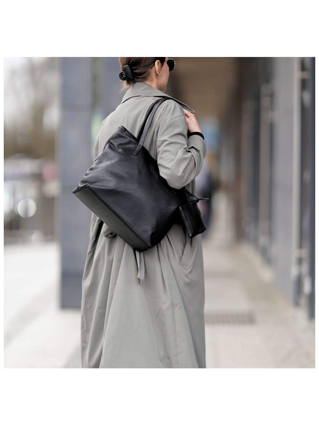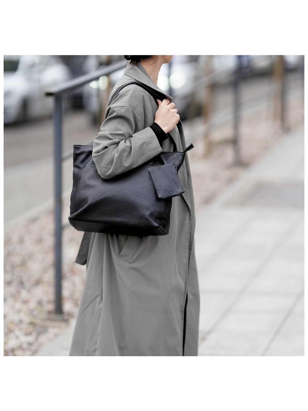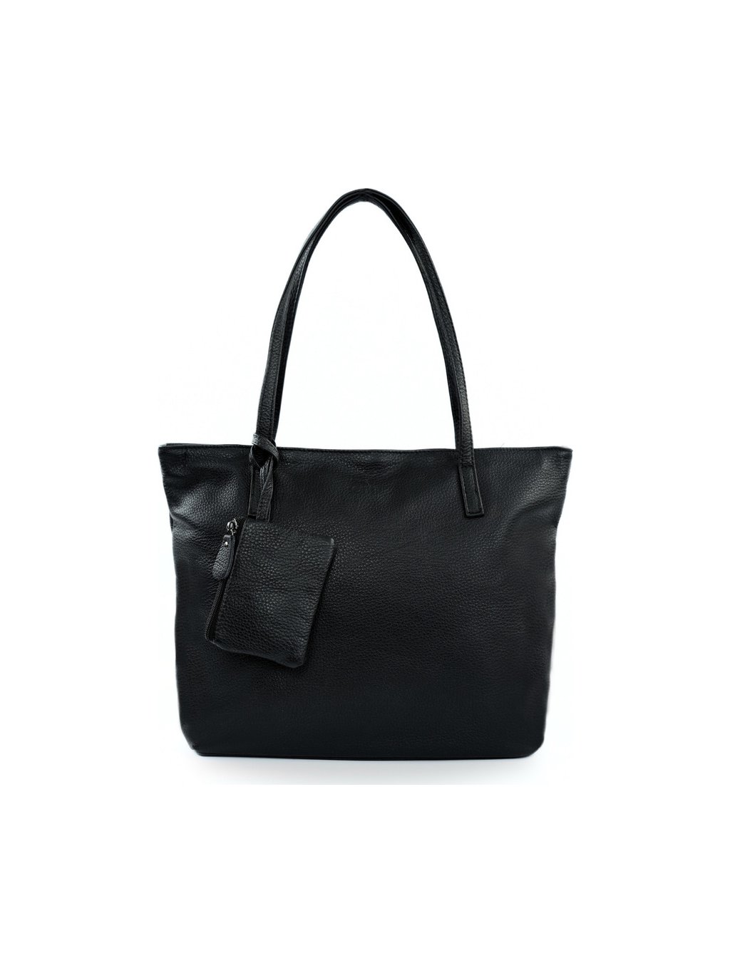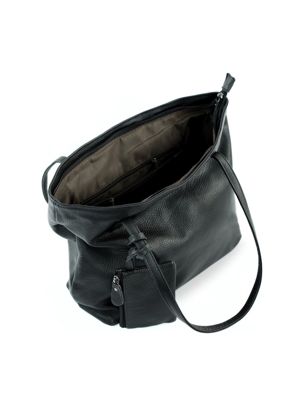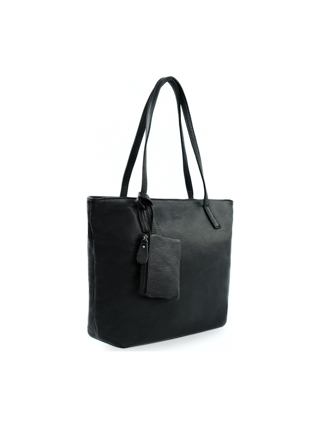 Fekete női bőr shopper táska RILLIA kis külső táskával