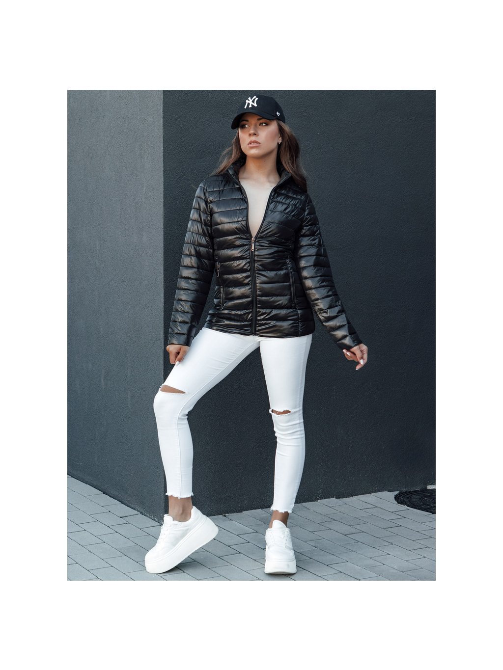 Fekete női BREEZFIT steppelt kabát