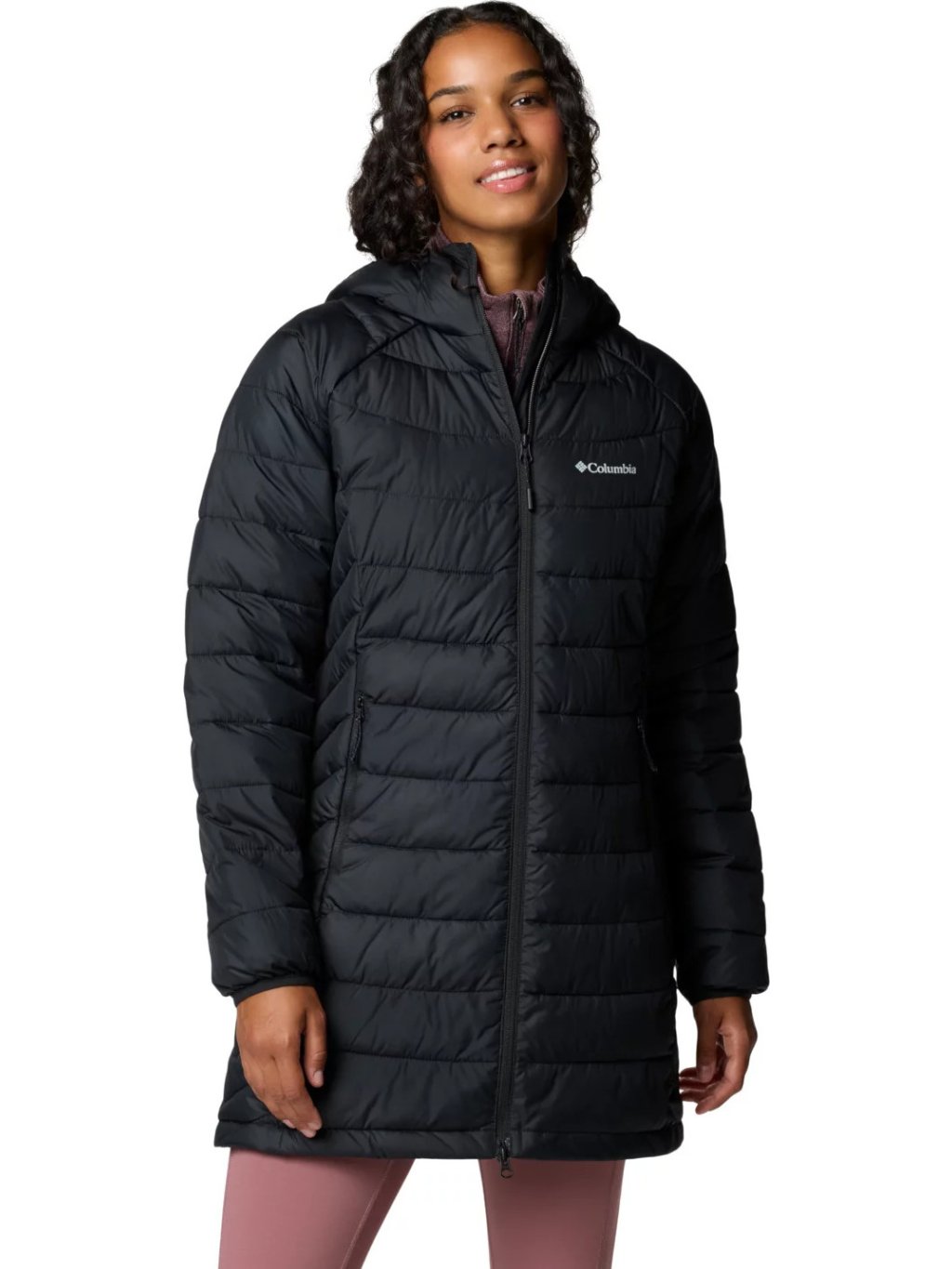 Fekete női hosszú steppelt Columbia Powder Lite II Mid Jacket