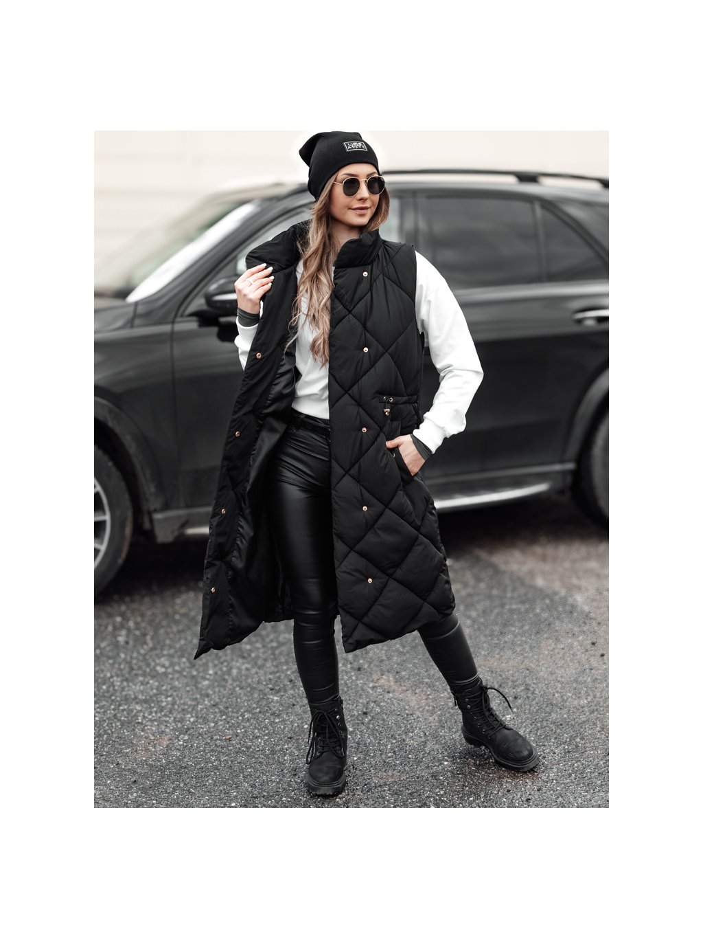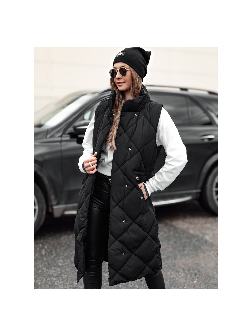 Fekete női hosszú steppelt mellény ARCTVEST